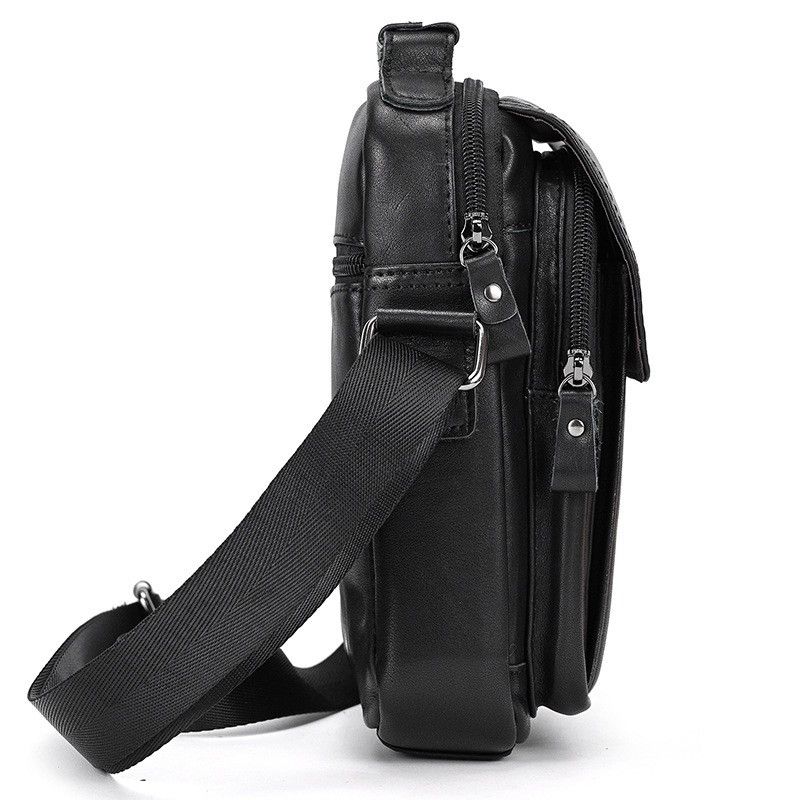 Сумка-барсетка чоловіча через плече шкіряна гладка чорна Tiding Bag TD-69291