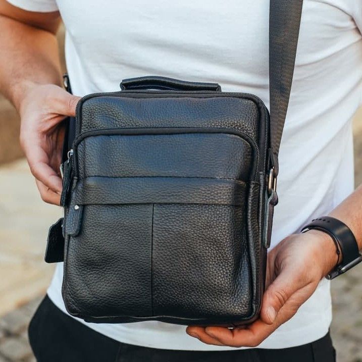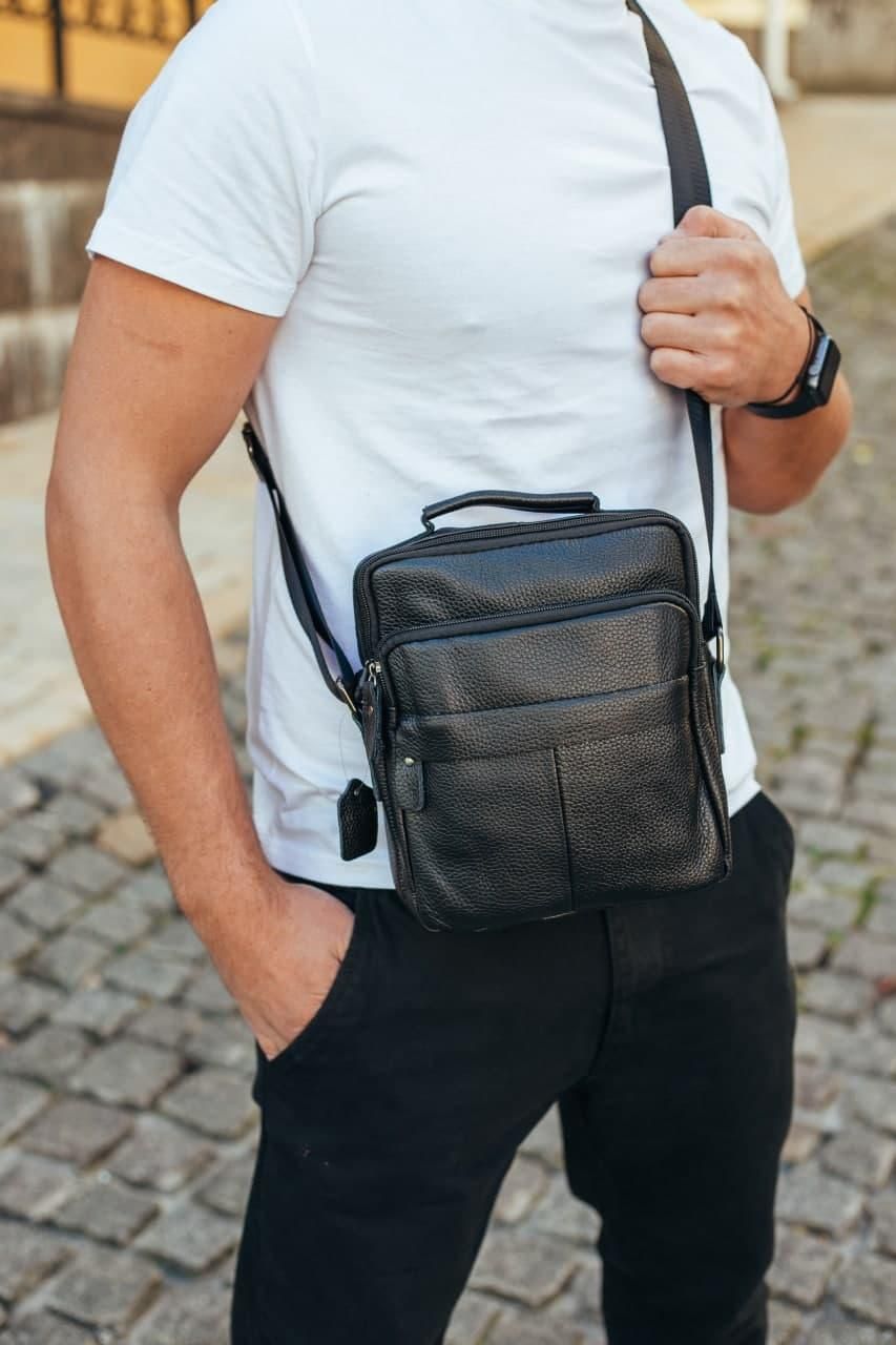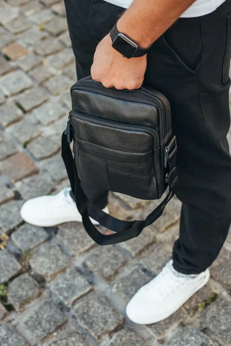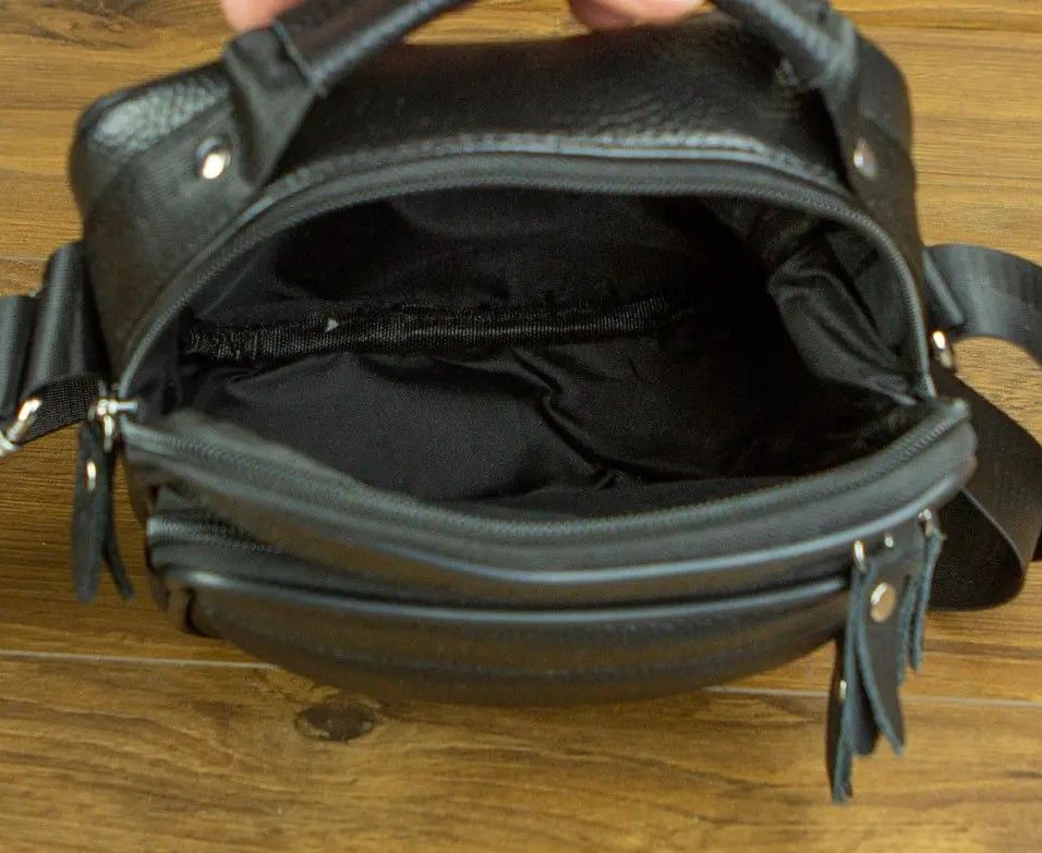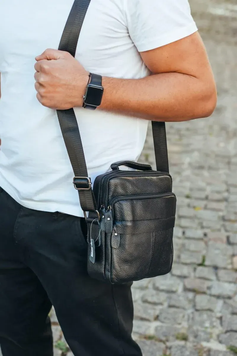 Сумка через плече з натуральної шкіри 22х24х6 / месенджер для активного чоловіка, чорний
