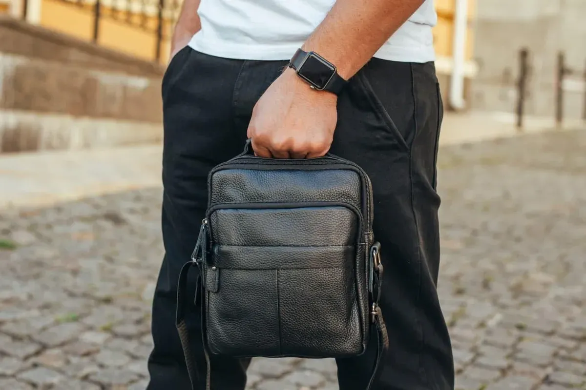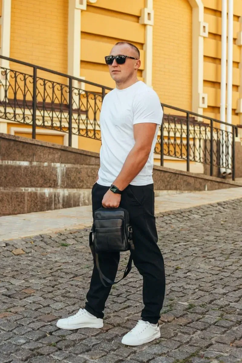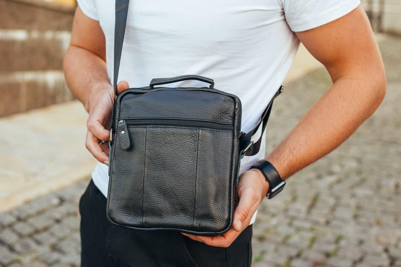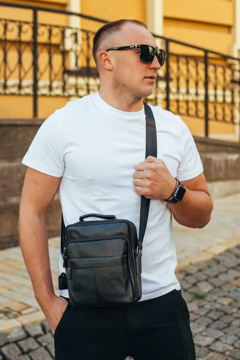 Сумка через плече з натуральної шкіри 22х24х6 / месенджер для активного чоловіка, чорний