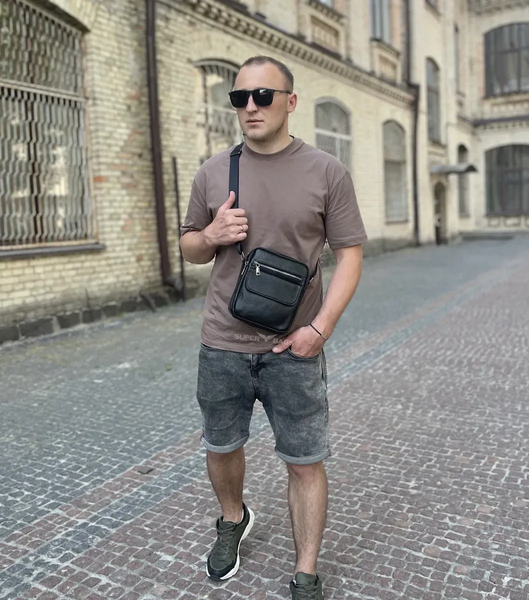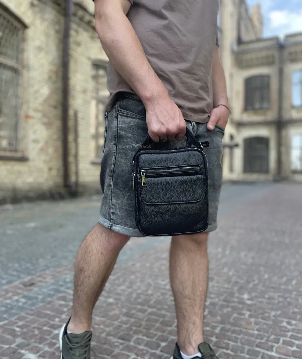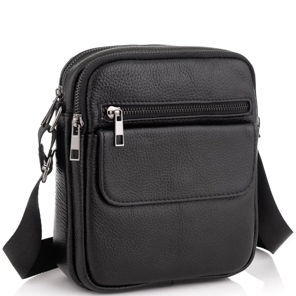 Сумка чоловіча через плече шкіряна чорна Tiding Bag IT-73302