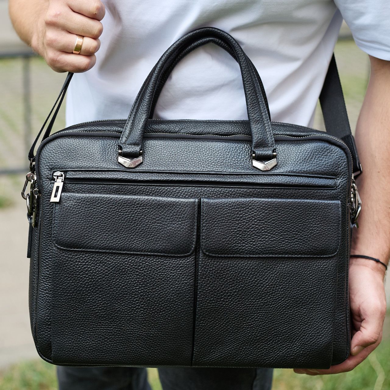 Портфель із натуральної шкіри для чоловіків, поєднання ділового стилю та практичності для роботи й повсякденних справ.