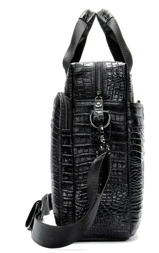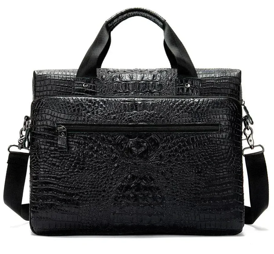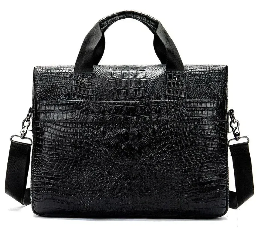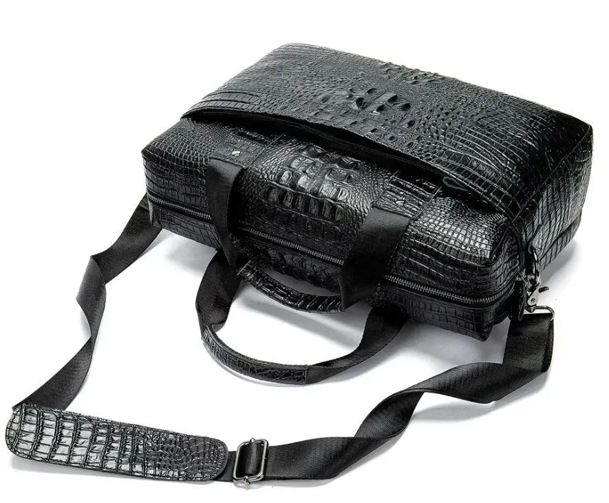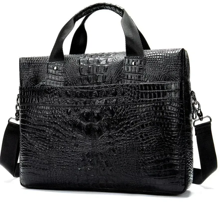 Солідна, якісна сумка з тисненням під крокодила з натуральної шкіри. У сумці зручно носити ноутбук, документи формату А4. Аксесуар прошитий чорною ниткою. Ви можете носити таку сумку як на плечі, так і в руках за ручки. Усередині сумки коричнева підкладка. Виглядає така сумка дуже солідно і розкішно. Шкіра такого плану дуже добре і довго носиться і невибаглива у догляді. Дуже комфортно ходити з такою сумкою на роботу чи зустрічі. Також, ви можете взяти сумку із собою у поїздку. Аксесуар відмінно підійде для чоловіків, які люблять почуття стилю та розкіш. Ідеальний подарунок для будь-якого чоловіка.
