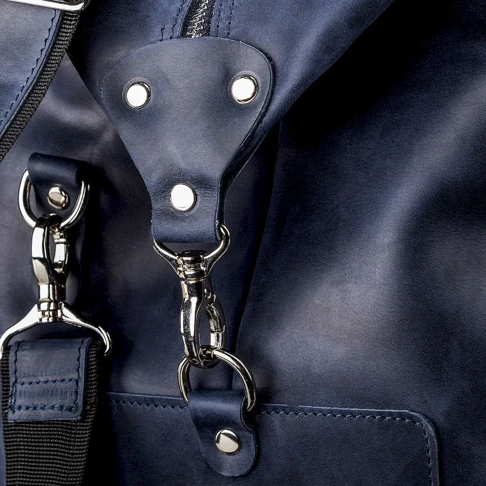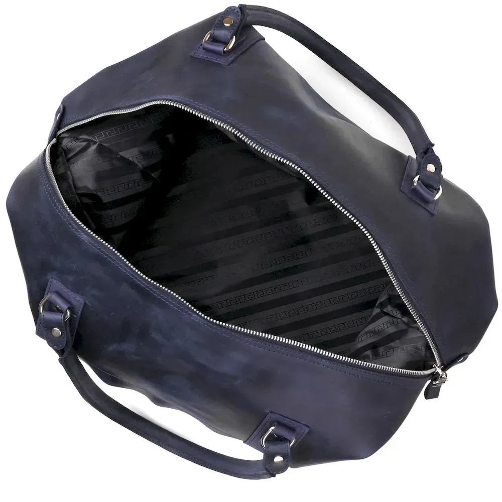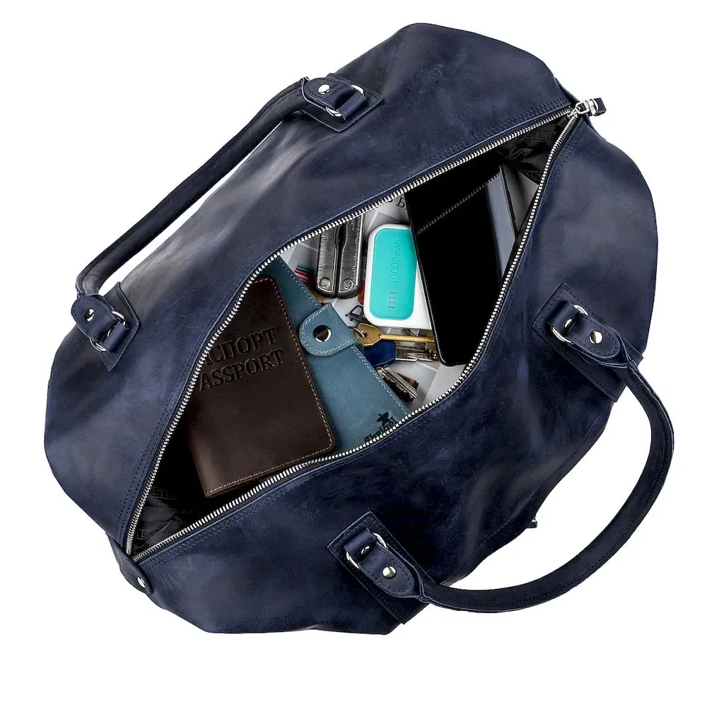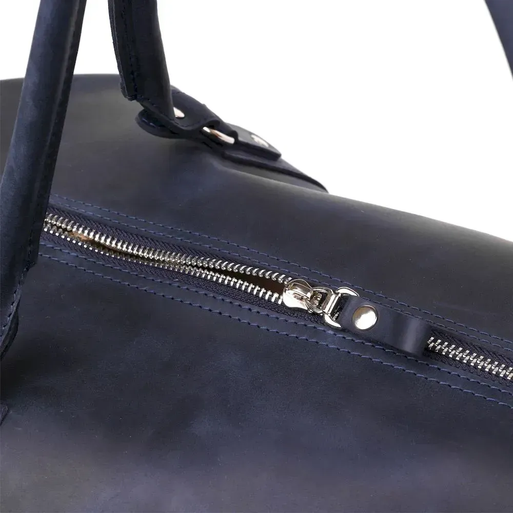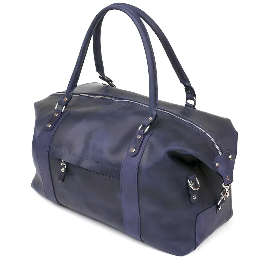Аксессуар виготовлений з натуральної вінтажної шкіри, має неоднорідність забарвлення та потертості, вся фурнітура з металевого сплаву, дуже якісна та надійна. Дорожня сумка зроблена на совість, всі шви рівні, акуратні та міцні. На зовнішній стінці розташований прихований кишеню на блискавці, яка прикрита шкірою.