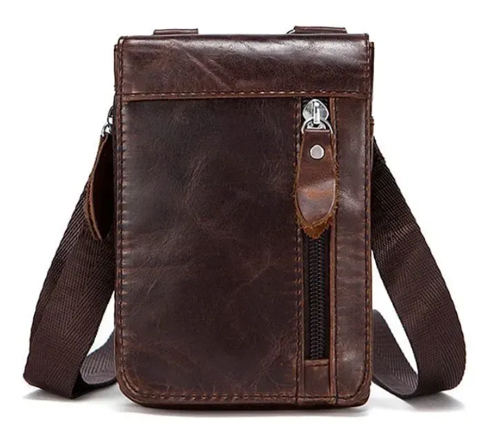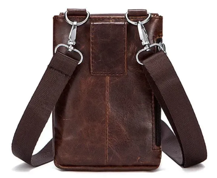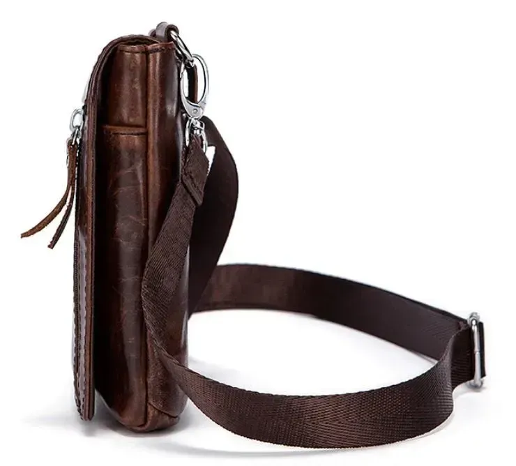Дуже компактна сумочка- клатч для чоловіків. Сумка кріпиться на ремінь. Напевно, найкращий варіант для тих, хто шукає сумку для найменших речей. Всі ваші речі будуть завжди перед очима та в безпеці. З такої сумки все дуже зручно діставати. Аксесуар прошитий коричневою ниткою по краях і має коричневу підкладку всередині. Прекрасний подарунок для будь-якого чоловіка.