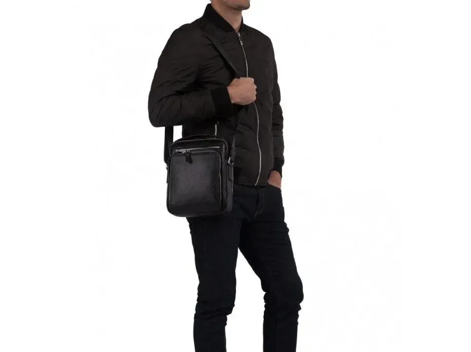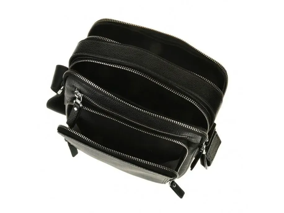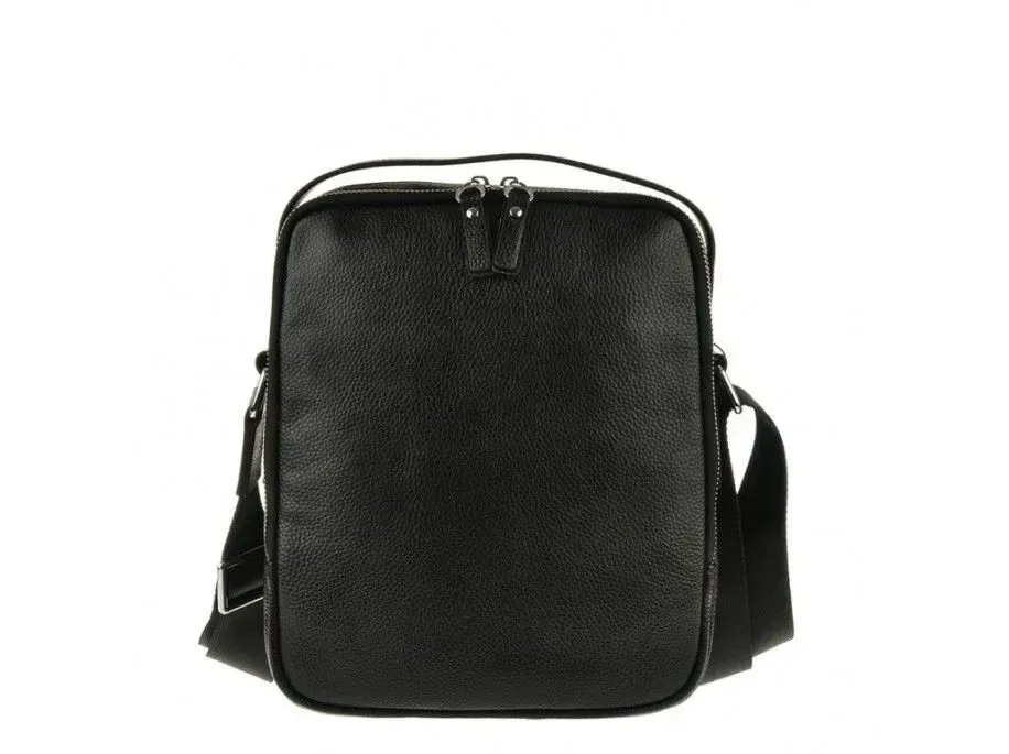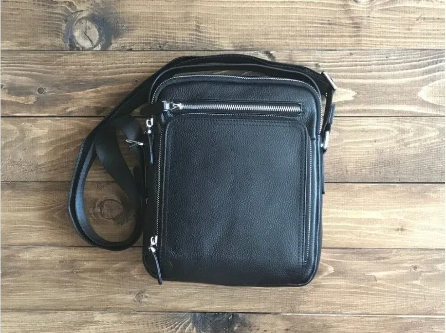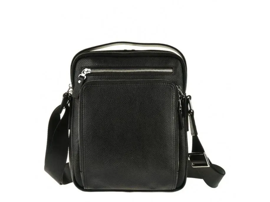 Надійна шкіряна сумка з натуральної зернистої шкіри, більш відомої як «флотар». Аксесуар обладнаний надійною металевою фурнітурою та міцним текстилем для внутрішньої підкладки. Із зовнішнього боку виробу розташовані дві кишені на блискавках. Аксесуар складається з двох головних відділень, що закриваються блискавкою, в одному з них знаходиться прихована кишеня на блискавці. Носиться сумка через плече за допомогою ременя, що регулюється, з міцної ремінної стрічки, і за допомогою шкіряної ручки. Взявши сумку в руки, Вам більше не захочеться її відпускати, тому що якість відчувається відразу і чудовий сучасний дизайн припаде до душі більшості чоловіків.