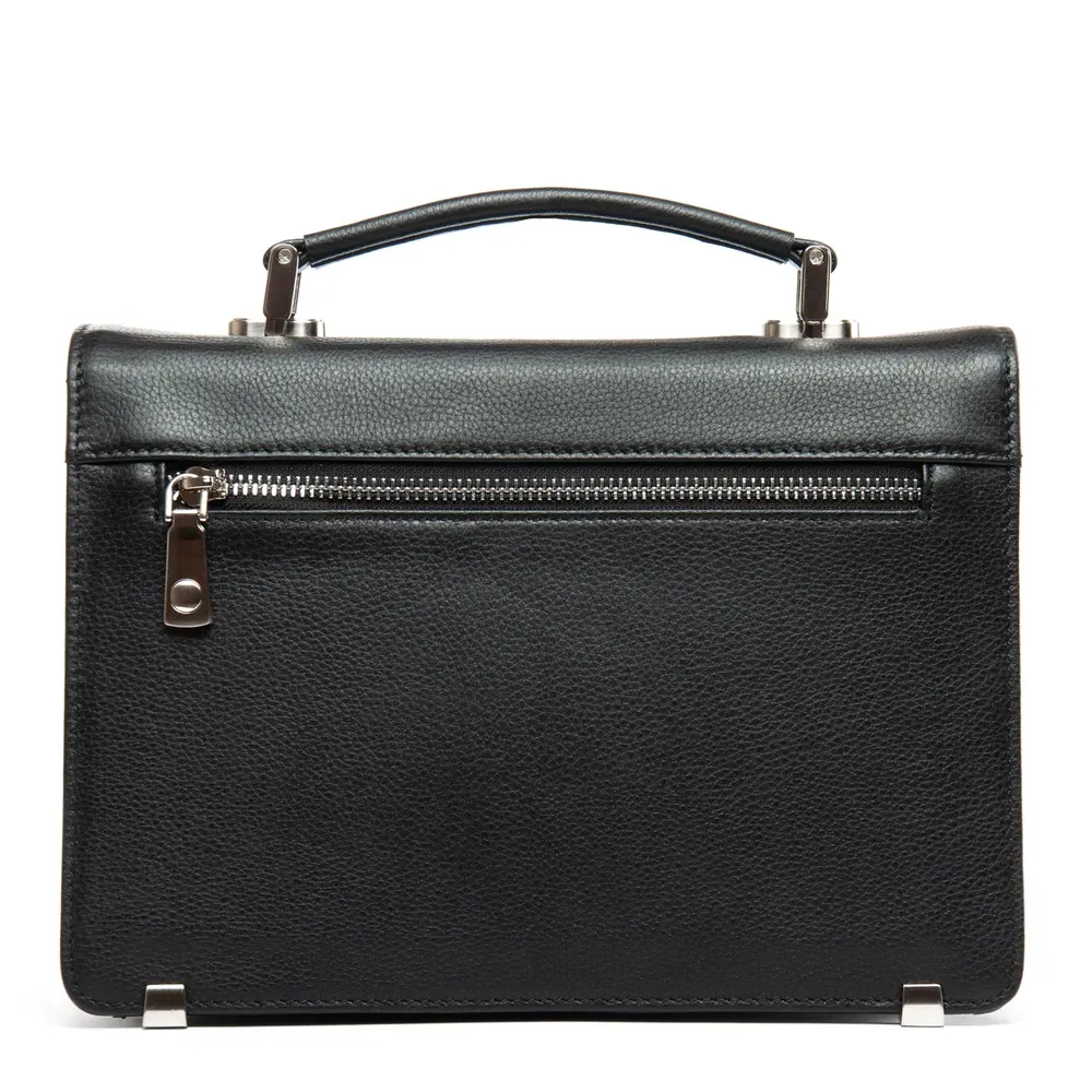 Под клапаном находятся три отделение (между отделениями карманы на молнии). Внутри есть боковой карман на молнии и открытый карман. На фасаде под клапаном расположен открытый карман. На обратной стороне есть карман на молнии.