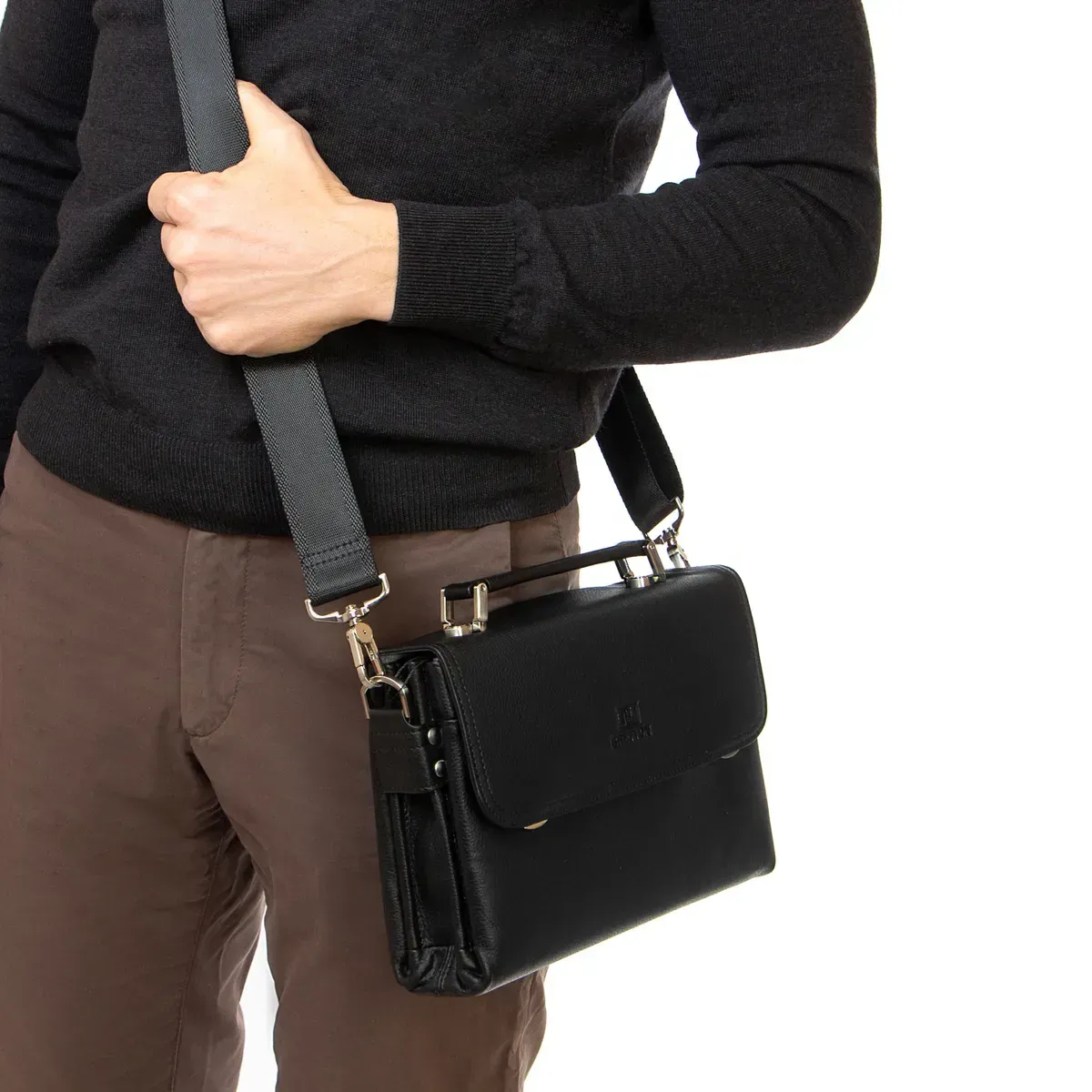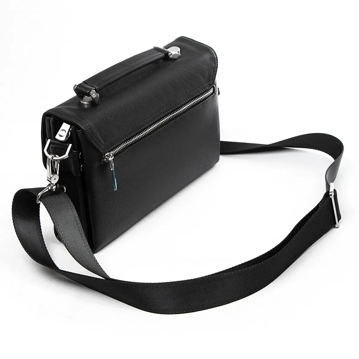 Чоловіча шкіряна сумка барсетка Bretton. Під клапаном знаходяться три відділення (середнє додатково закривається на блискавку). Усередині є бічна кишеня на блискавці та відкрита кишеня. На фасаді під клапаном розташована відкрита кишеня, а на звороті кишеня на блискавці. Регульований плечовий ремінь у комплекті.
