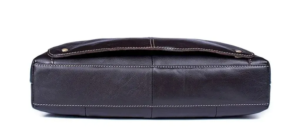Стильна чоловіча сумка для роботи, ноутбука або документів із натуральної шкіри. Виглядає дуже стильно та компактно. Сумку можна носити як у руках, так і на плечі. Хороший вибір для чоловіків, які цінують якість. Сумка дуже функціональна. Фурнітура в сумці виконана із міцного металу золотистого кольору. Модель прошита світлою бежевою ниткою. Шви рівні. Сумка зроблена добротно. Аксесуар йде у тканинному чохлі, що захищає його від пилу. Може бути чудовим подарунком для близької людини.
