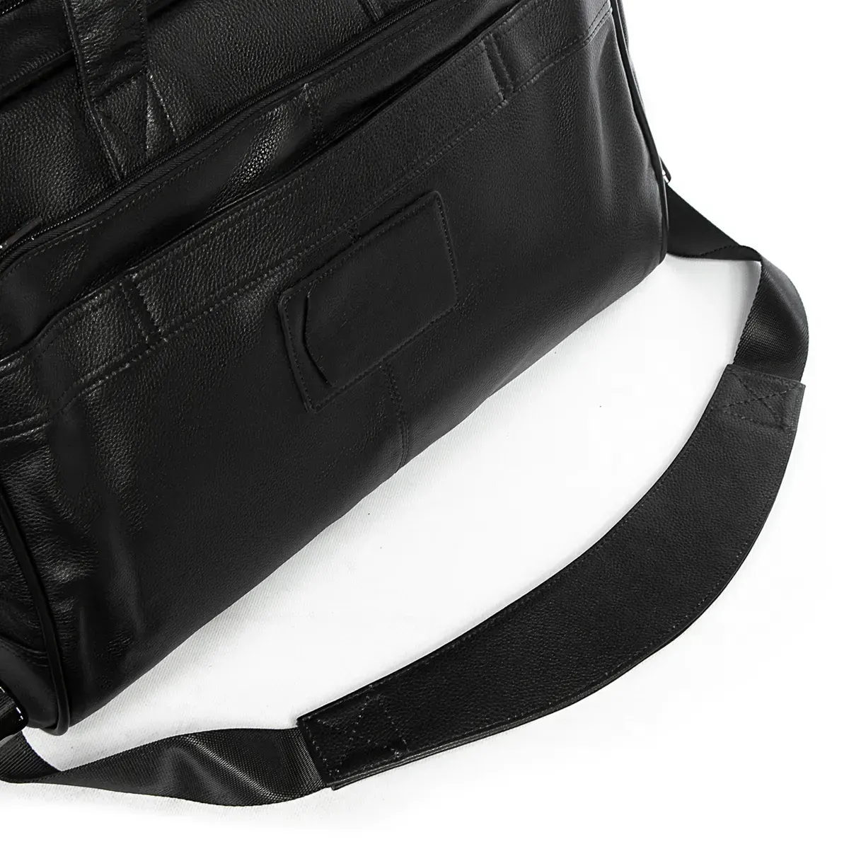 Чоловіча шкіряна сумка Bretton. Закривається на блискавку. Усередині знаходиться одне відділення, велика бічна кишеня на блискавці та відкрита кишеня. На фасаді та на звороті розташовані великі кишені на блискавці. На зворотній стороні сумки також є кріплення на ручку валізи. У комплекті регульований плечовий ремінь з широкою м'якою вставкою. Розмір (див.) 47*31*26, висота ручки 10 см.