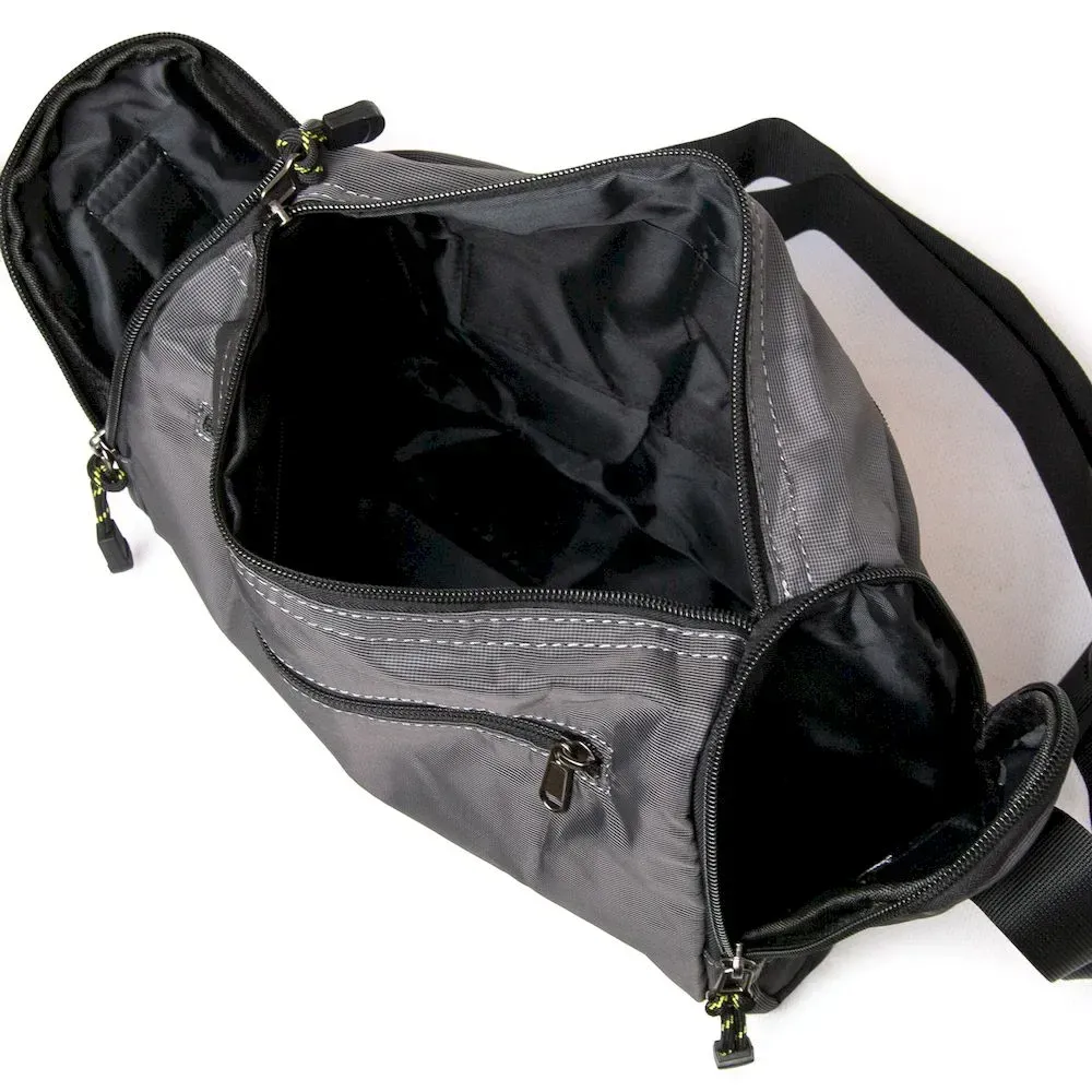 Компактна дорожня/спортивна сумка Lanpad. Одне відділення закривається на блискавку. Усередині відділення є кишеня на блискавці та відкрита кишеня. На фасаді та зворотній стороні знаходяться дві місткі кишені на блискавці. На торцях сумки також розташовані кишені на блискавці. Регульований плечовий ремінь шириною 4см.