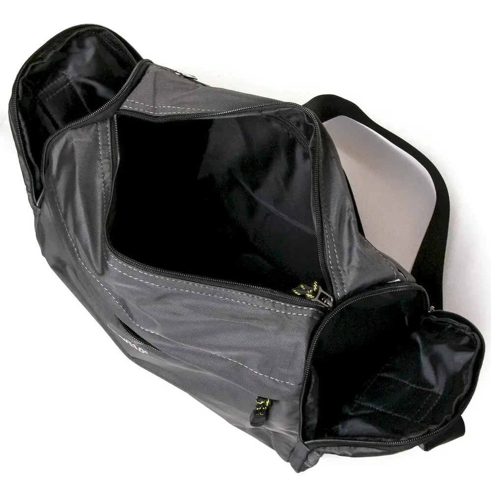 Чоловіча компактна дорожня/спортивна сумка Lanpad. Одне відділення закривається на блискавку. Усередині відділення є кишеня на блискавці та відкрита кишеня. На фасаді та зворотній стороні знаходяться дві місткі кишені на блискавці. На торцях сумки також розташовані кишені на блискавці. Регульований плечовий ремінь шириною 4см.