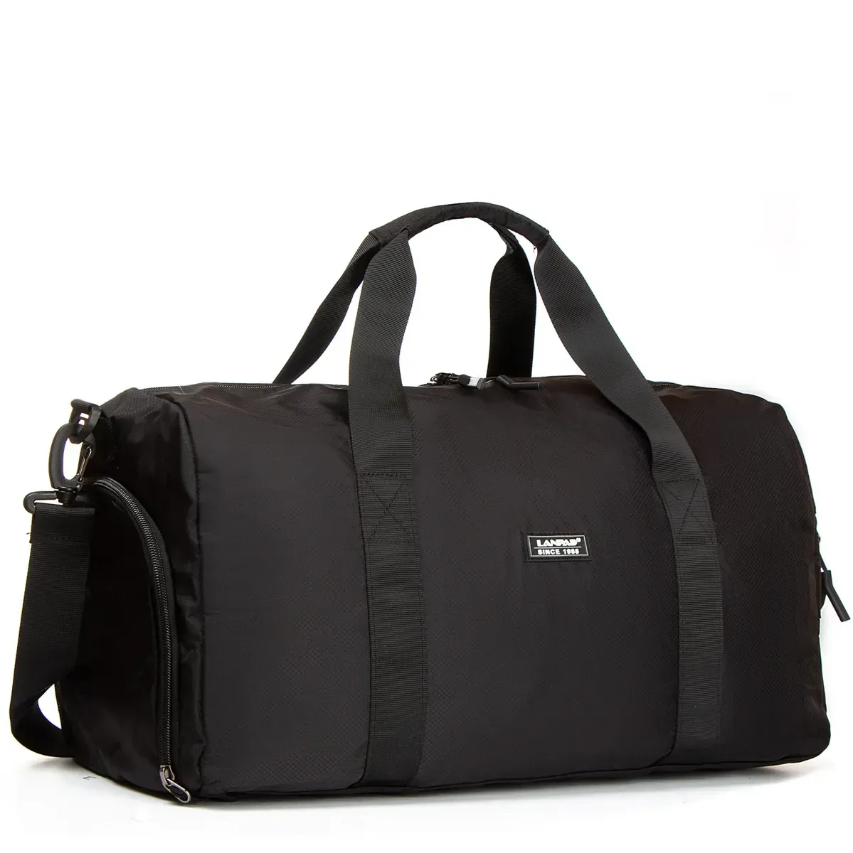 Чоловіча дорожня/спортивна сумка Lanpad. Одне відділення закривається на блискавку. Усередині відділення є кишеня на блискавці та подвійна відкрита кишеня. На звороті розташована велика кишеня на блискавці з герметичною підкладкою та кишеня меншого розміру. На торцях сумки розташовані кишеня для взуття та кишеня на блискавці. Регульований плечовий ремінь, шириною 4см. Розмір (див.) 50*25*30