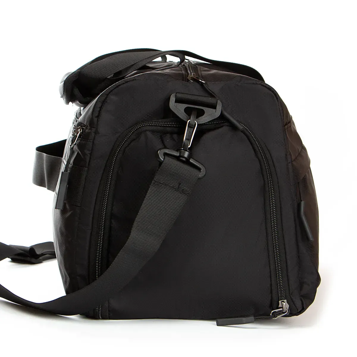 Чоловіча дорожня/спортивна сумка Lanpad. Одне відділення закривається на блискавку. Усередині відділення є кишеня на блискавці та подвійна відкрита кишеня. На фасаді знаходиться кишеня на блискавці. На звороті розташована велика кишеня на блискавці з герметичною підкладкою. На торцях сумки розташовані кишеня для взуття та відкрита кишеня. Регульований плечовий ремінь, шириною 4см. Розмір (див.) 45*25*25