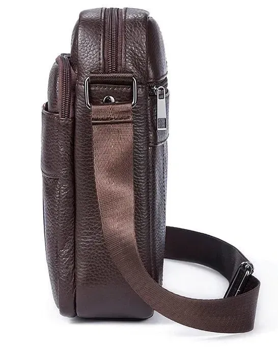 Сумка для стильних чоловіків. Зручна та багатофункціональна модель. Чудовий варіант на кожен день. Шкіра флотар стійка до зношування і довго носиться. На ній не видно подряпин і виглядає дуже ефектно. Модель доповнена фурнітурою кольору темного срібла. Сумка прошита по краях коричневою ниткою. Буде ідеальним варіантом для подарунка близькій людині.
