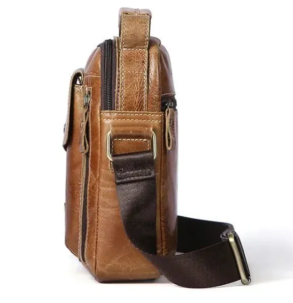 - текстильний ремінець на плече (незнімний). Солідна сумка для стильних чоловіків. По краях прошита рудою ниткою. Всередині аксесуара коричнева підкладка. Модель зручно носиться на плечі. Аксесуар вам прослужить дуже довго. Ідеальний варіант для подарунка близькій людині. Сумка упакована в тканинний мішок від пилу та зносу.