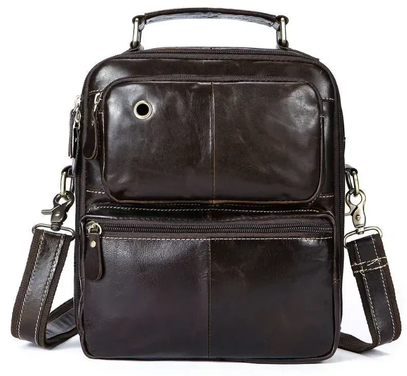 Оригінальна та сумка для чоловіків. Аксесуар красиво грає на сонці. Підкреслить ваш статус у суспільстві та відмінне почуття стилю. З такою сумкою у вас буде все необхідне під рукою. Ідеальний варіант для тих, хто любить зручні сумки середнього розміру. Дизайн аксесуара виконаний у класичному стилі. Модель прошита світлою ниткою та доповнена золотистою фурнітурою. Всередині сумки коричнева текстильна підкладка. Буде чудовим подарунком для будь-якого чоловіка. Купуючи таку сумку, ви будете здивовані, як довго вона вам прослужить. Аксесуар упакований у тканинний чохол.