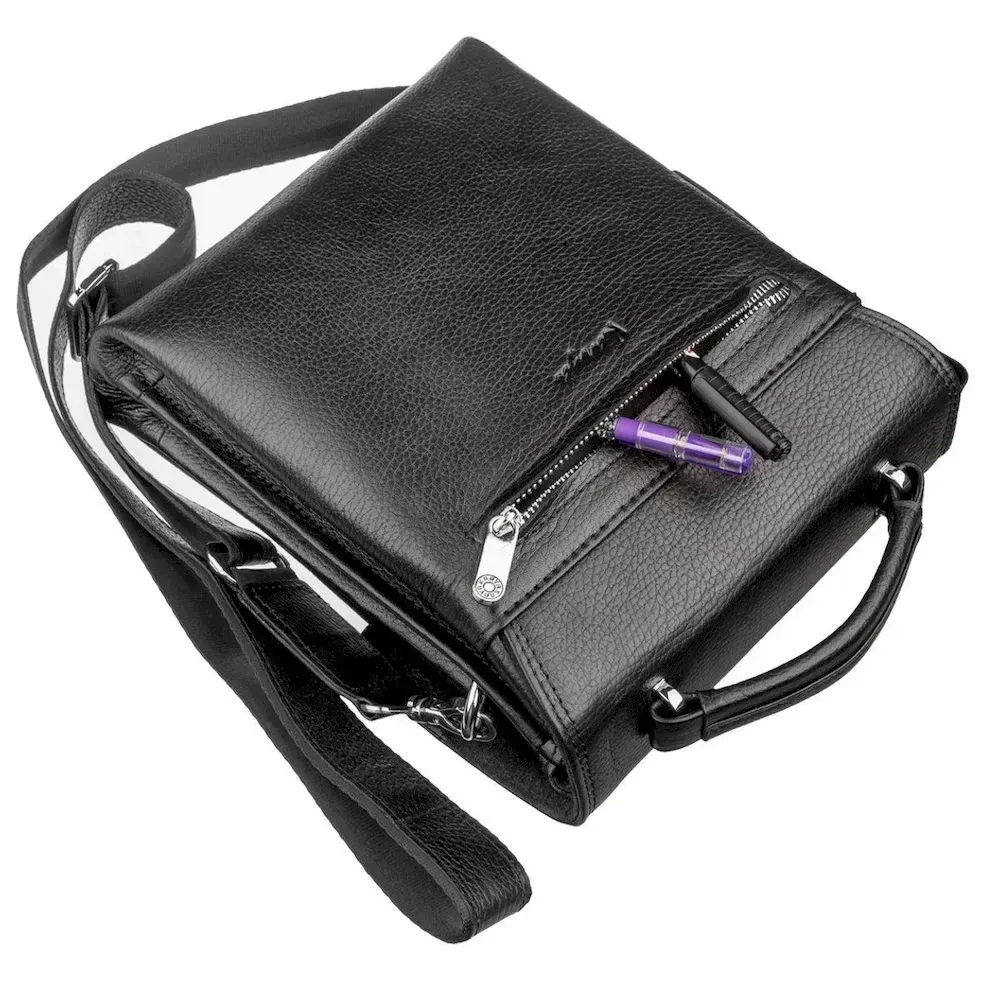 - зверху чоловічої сумки розташована зручна переносна ручка;
