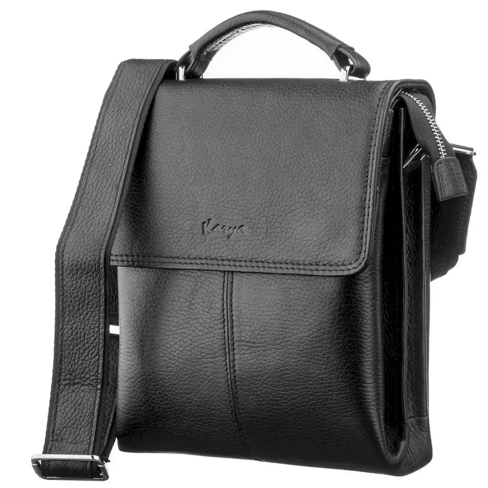 Сумка чоловіча KARYA 17223 шкіряна Чорна флотар