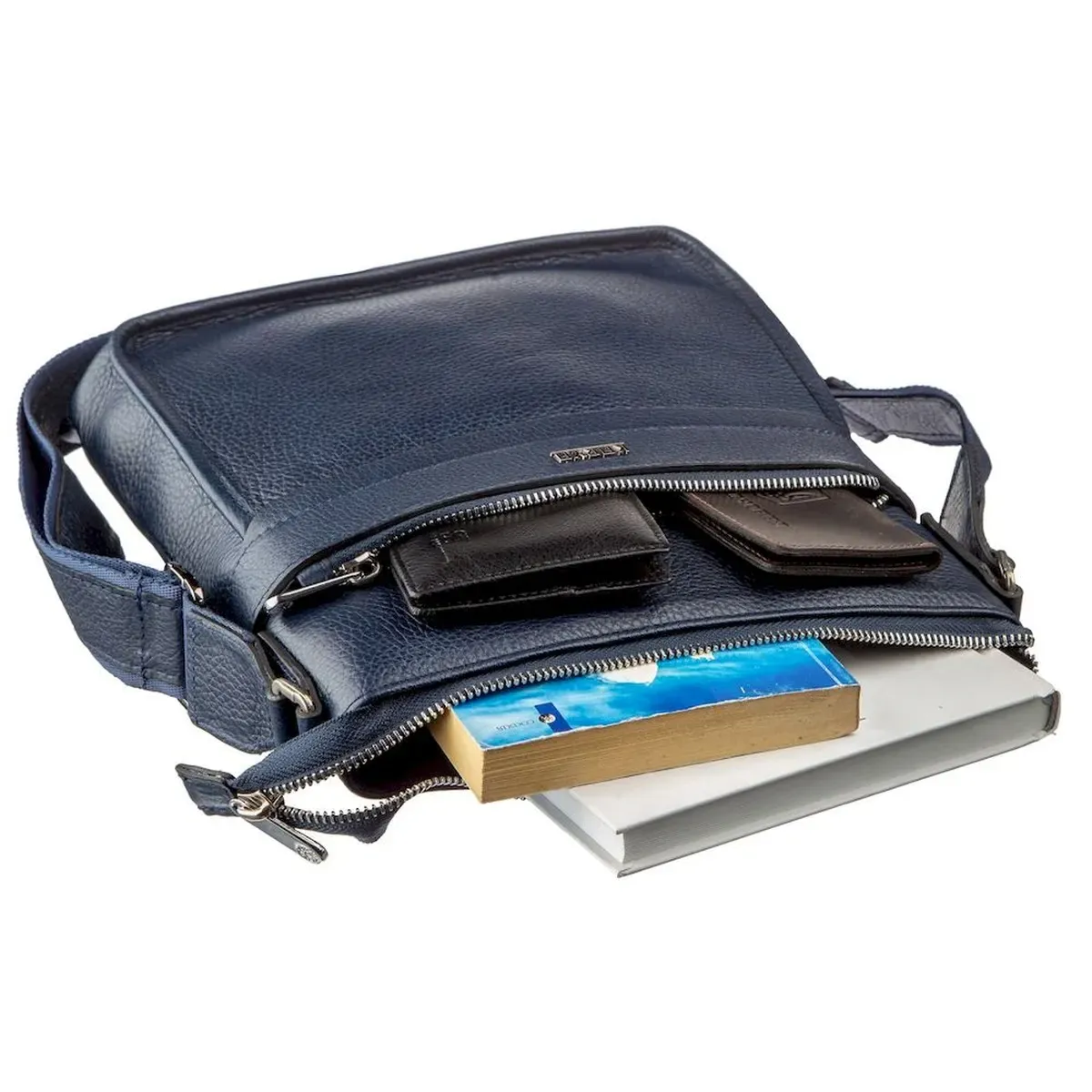 Сумка доповнена всім необхідним функціоналом для будь-якого чоловіка на кожен день. Виріб виконаний у шкірі флотар та доповнений якісною фурнітурою. Сумка не вимагає особливого догляду та довго носиться. Всередині аксесуару якісна текстильна підкладка коричневого кольору. По краях модель прошита синьою ниткою. Виріб ідеально підійде на кожен день як на роботу, навчання так і в поїздку. Така сумка буде відмінним і незамінним подарунком для будь-якого чоловіка.