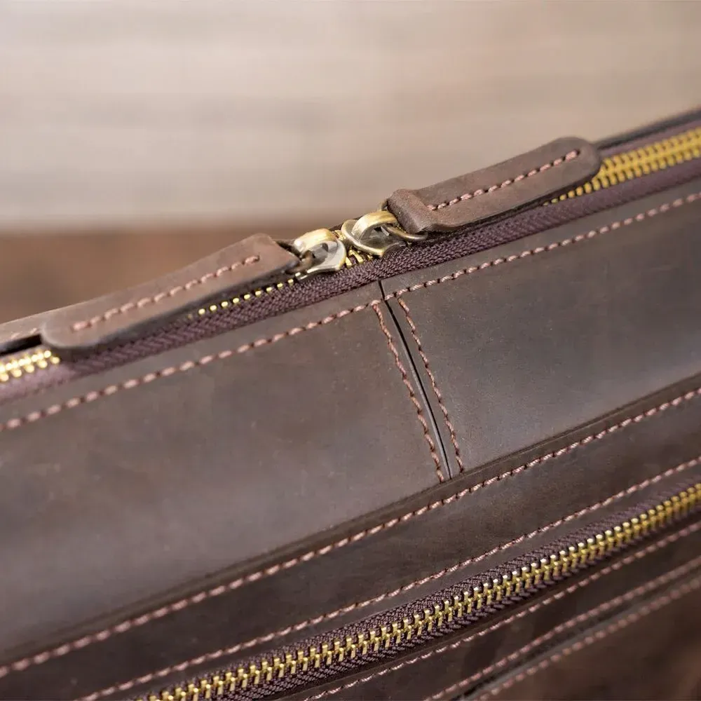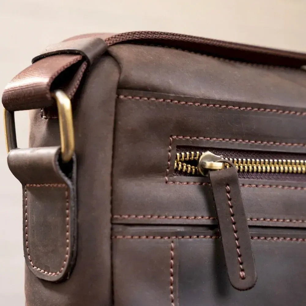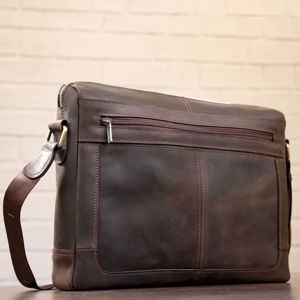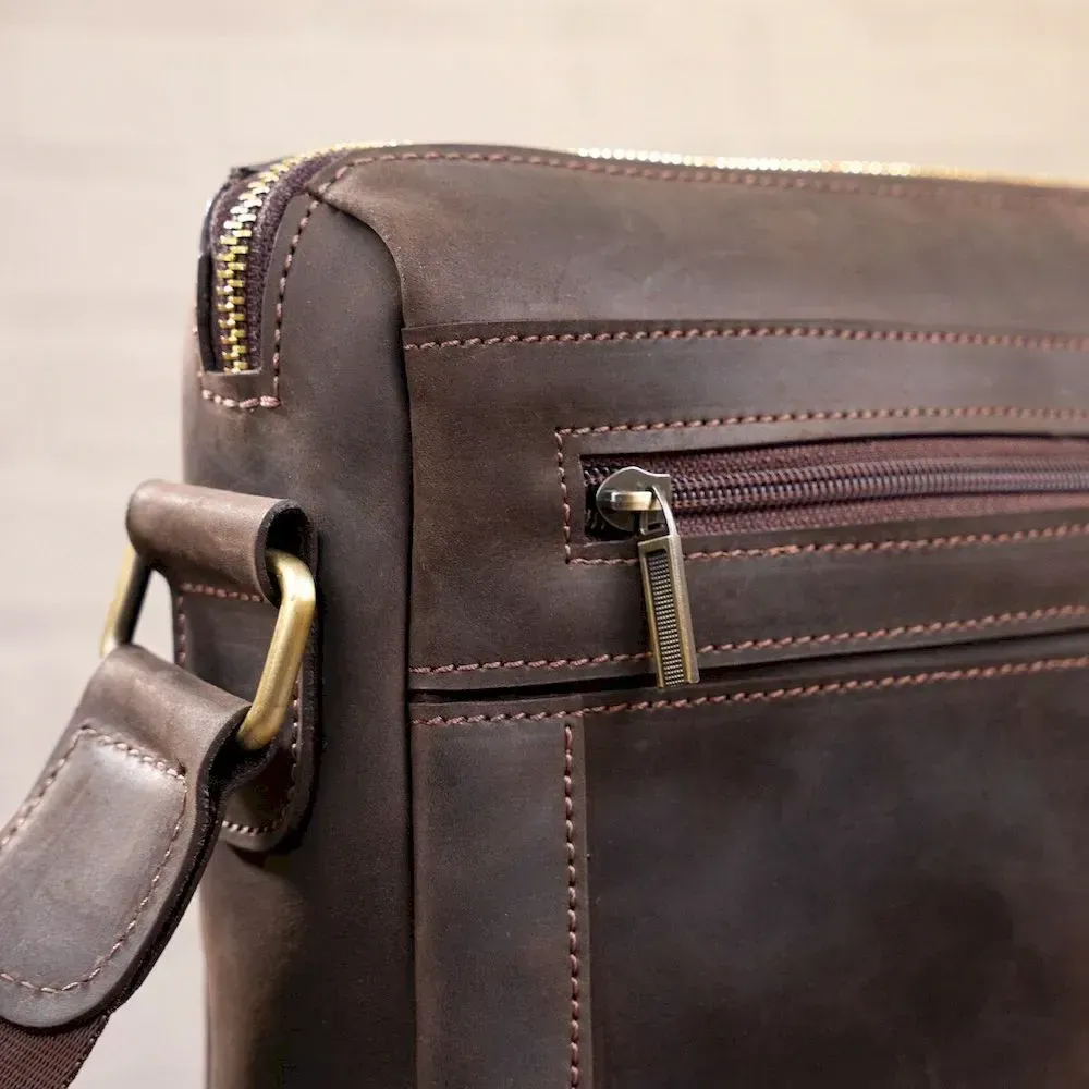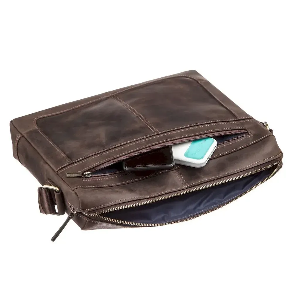 Містка чоловіча сумка на плече. У сумку поміститься ноутбук діагоналлю 14 дюймів. Аксесуар виконаний з натуральної вінтажної шкіри, характерними ознаками якої є: неоднорідність забарвлення та потертості, які надають виробу вишуканого, індивідуального вигляду. Виріб, який дозволяє вмістити папку для паперу, особисті речі. Ідеально підходить діловим людям для роботи, навчання або зустрічей.