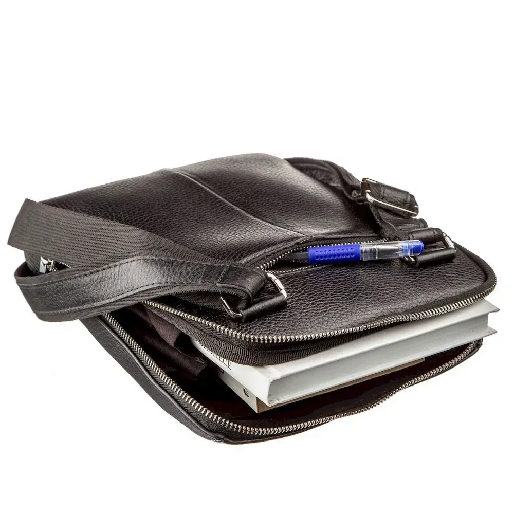 Стильна чоловіча сумка з натуральної шкіри. Модель виконана у шкірі флотар. Сумка підійде для чоловіків, які шукають аксесуар невеликого розміру для мінімальної кількості речей на кожен день. Виріб не вибагливий у догляді і чудово носиться. По краях сумка прошита чорною рівним рядком. Така сумка буде ідеальним подарунком для близької людини.