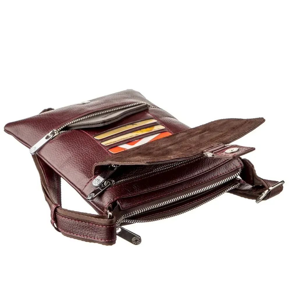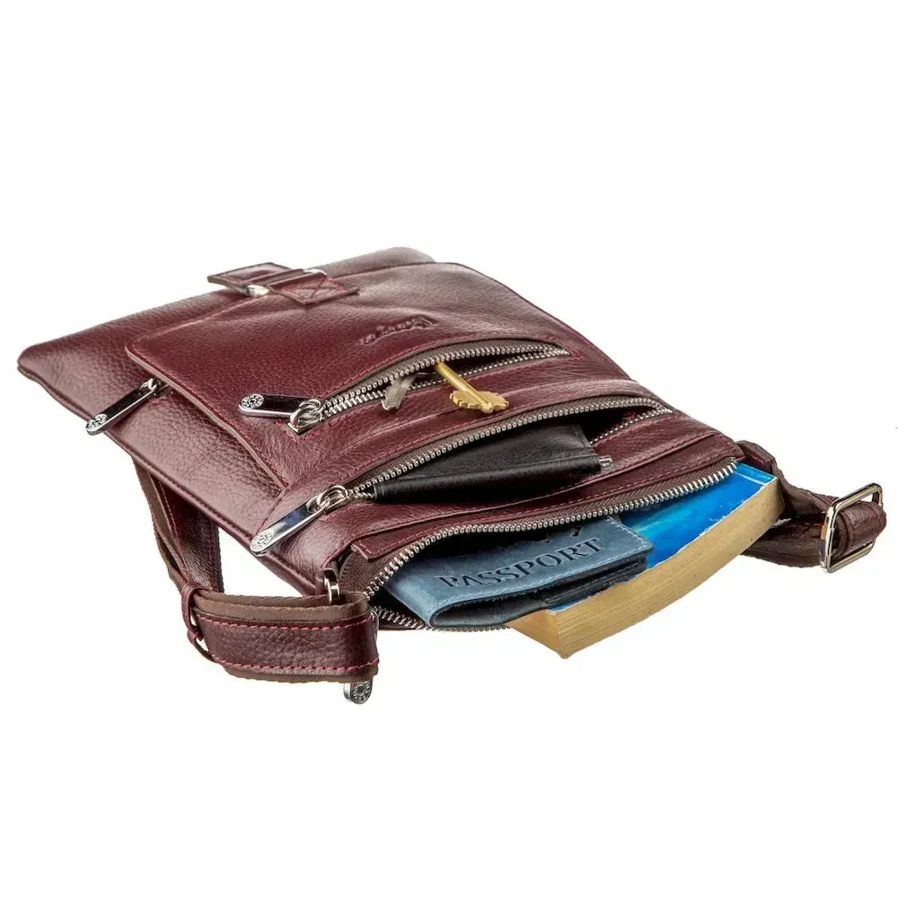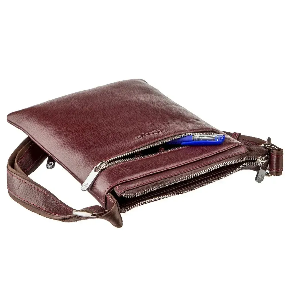 - кишеня на блискавці на тильній стороні. тих, хто хоче виділитися із натовпу. Аксесуар чудово підійде для чоловіків будь-якого віку. Сумка має різноманітний та необхідний функціонал для вашої зручності. Сумка виготовлена в шкірі флотар з урахуванням усіх необхідних вимог і технологічним процесом, відточеним вже протягом декількох десятків років. Аксесуар доповнений якісною сріблястою металевою фурнітурою та прошитий по краях сливовою ниткою. Всередині аксесуару якісна текстильна підкладка. Сумка буде ідеальним подарунком для близької людини.