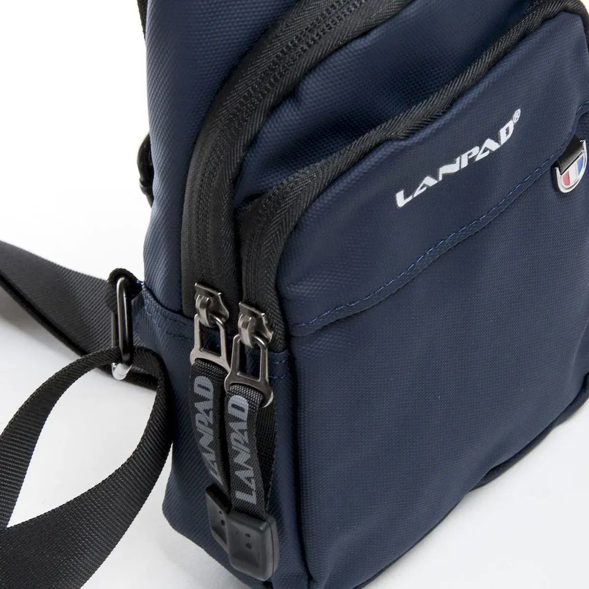 Чоловіча сумка Lanpad. Два відділення, що закриваються на блискавку. Усередині одного відділення є відкрита кишеня. На звороті знаходиться відкрита кишеня. Регульований ремінь, шириною 3см. Розмір (см.) 14*22*6