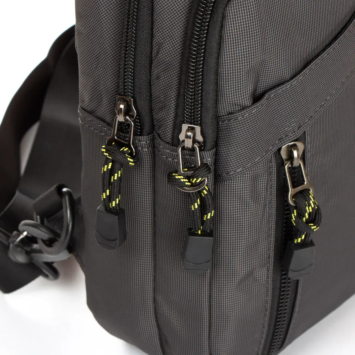 Чоловіча сумка Lanpad. Два відділення, що закриваються на блискавку. Усередині основного відділення є бічна кишеня на блискавці. На фасаді та зворотному боці сумки знаходяться кишені на блискавці, а на фасаді є ще й відкрита кишеня. Регульований ремінь, шириною 4см. можна переставляти на ліву/праву сторону