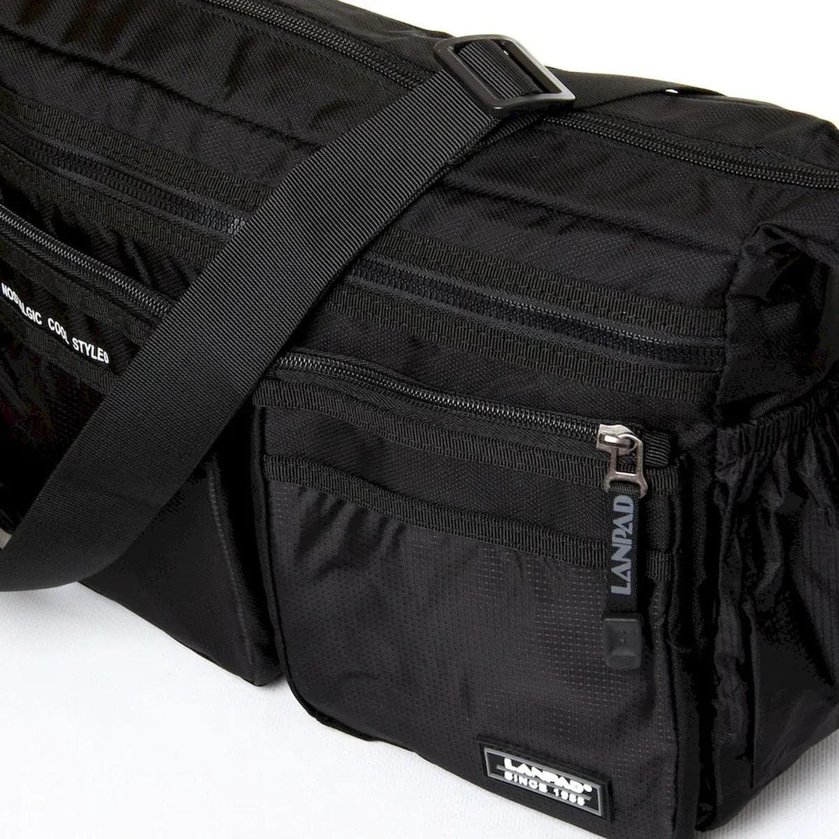 Чоловіча сумка Lanpad. Закривається на блискавку. Усередині знаходиться подвійне відділення, розділене кишенею-перегородкою на блискавці, кишеню на блискавці та відкриту подвійну кишеню. На фасаді та зворотному боці знаходяться місткі кишені на блискавці. На торцях сумки також розташовані відкриті кишені. Регульований плечовий ремінь, шириною 4см. Розмір (див.) 35*15*25