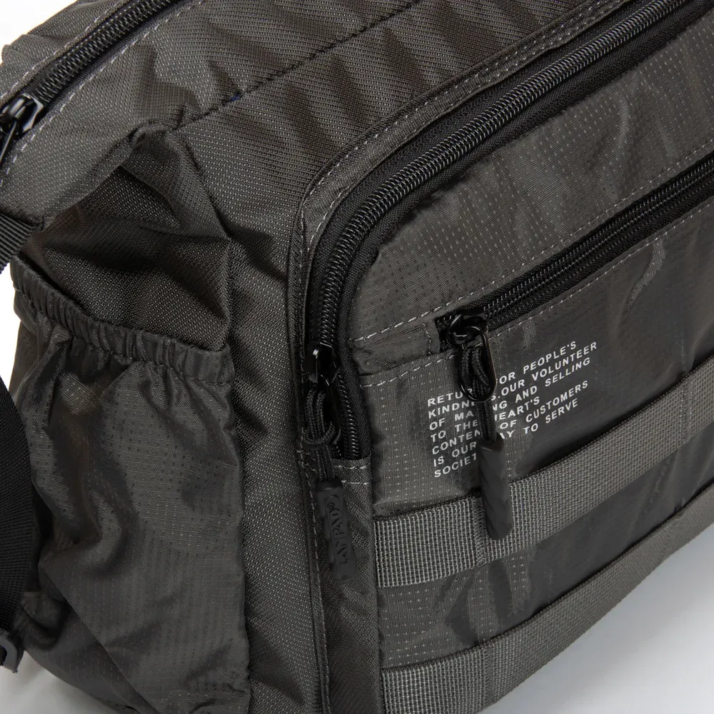 Мужская сумка Lanpad. Закрывается на молнию. Внутри находится двойное отделение, большой боковой карман на молнии и открытый двойной карман. На фасаде и обратной стороне находятся вместительные карманы на молнии. На торцах сумки также расположены открытые карманы.