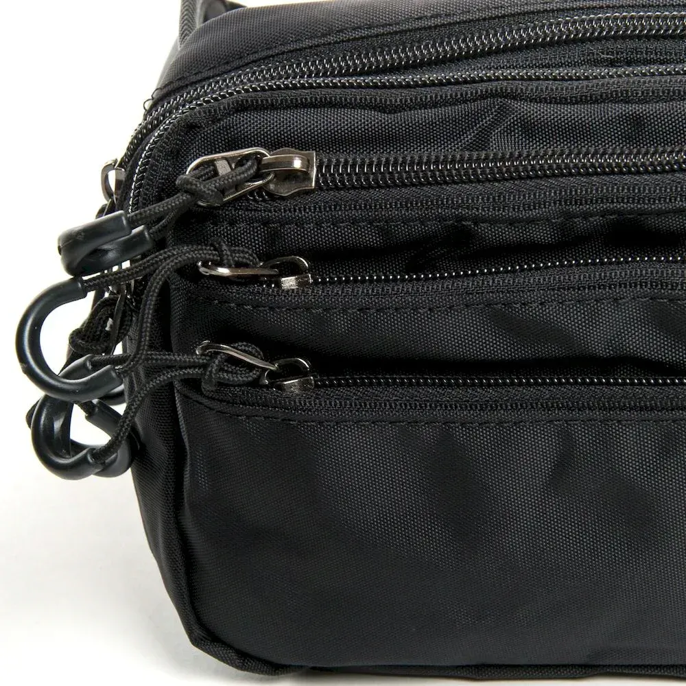 Чоловіча сумка Lanpad. Два великі відділення закриваються на блискавку. Усередині одного відділення є бічна кишеня на блискавці. На фасаді розташовані три кишені на блискавці, а на звороті одна кишеня. Регульований ремінь.