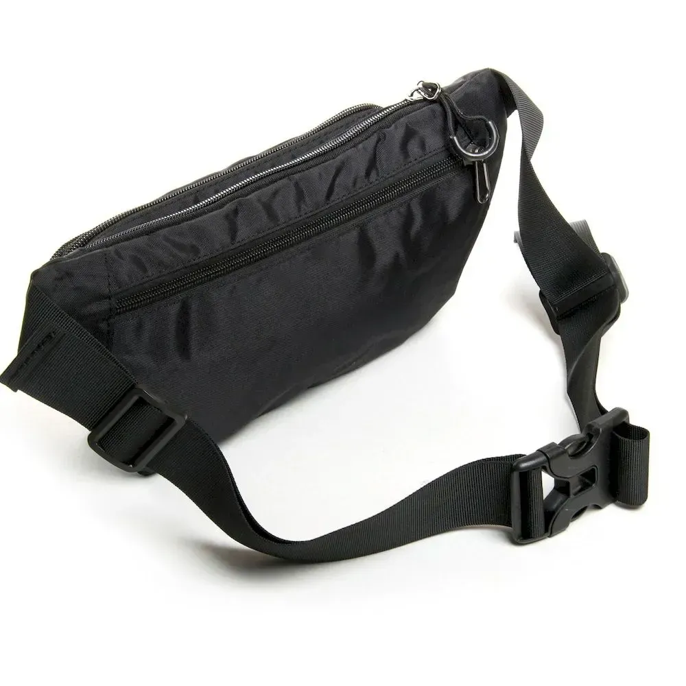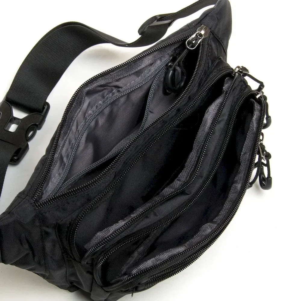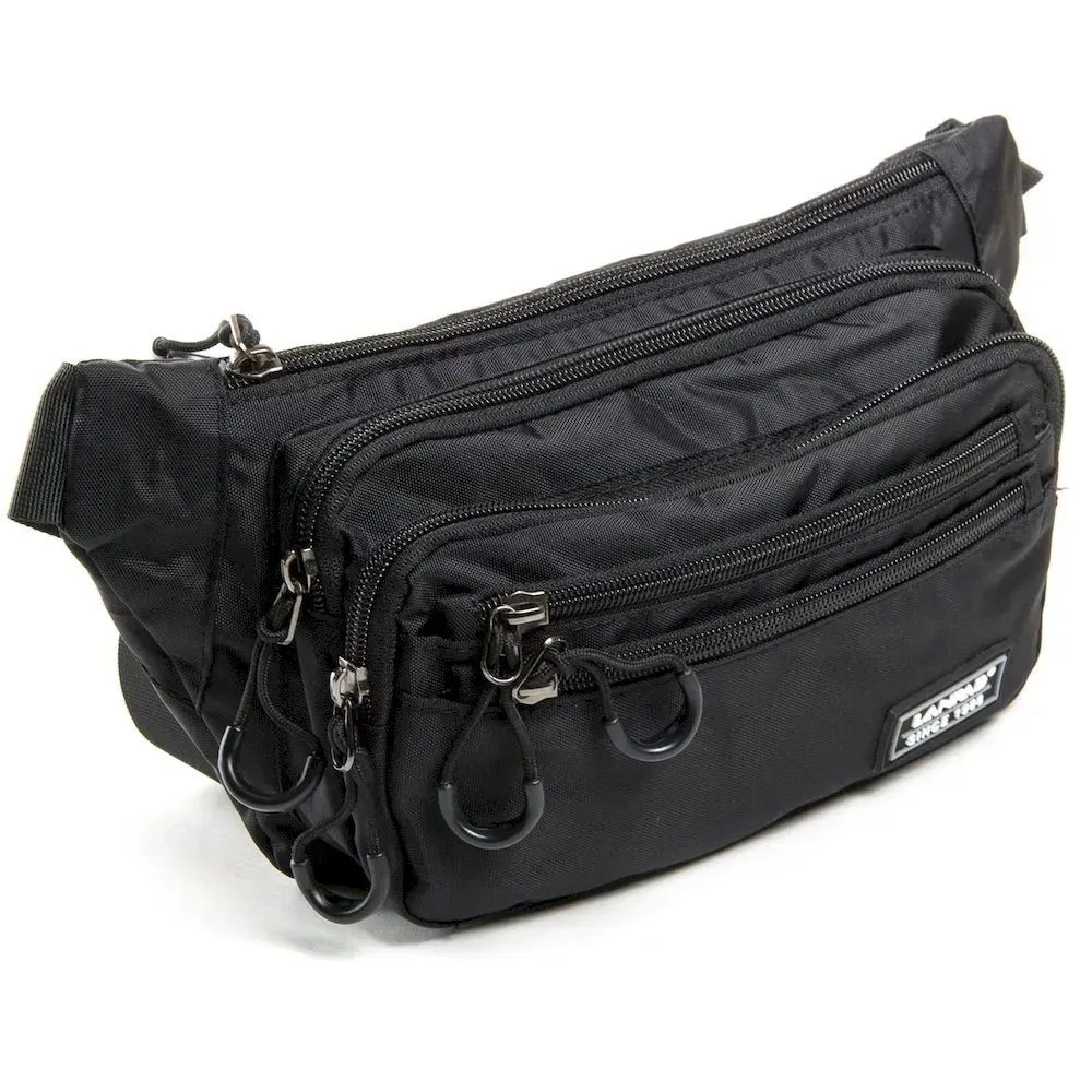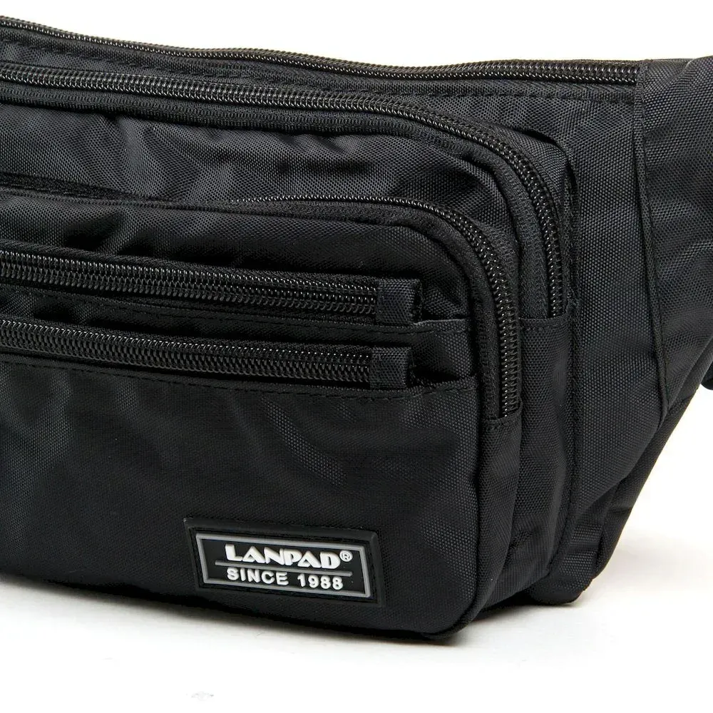 Чоловіча сумка Lanpad. Два великі відділення закриваються на блискавку. Усередині одного відділення є бічна кишеня на блискавці. На фасаді розташовані три кишені на блискавці, а на звороті одна кишеня. Регульований ремінь.