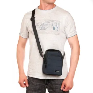 Чоловіча сумка пояс/плечо Lanpad. Одне відділення закривається на блискавку. Усередині є велика бічна кишеня на блискавці. На фасаді та на звороті знаходяться місткі кишені на блискавці.