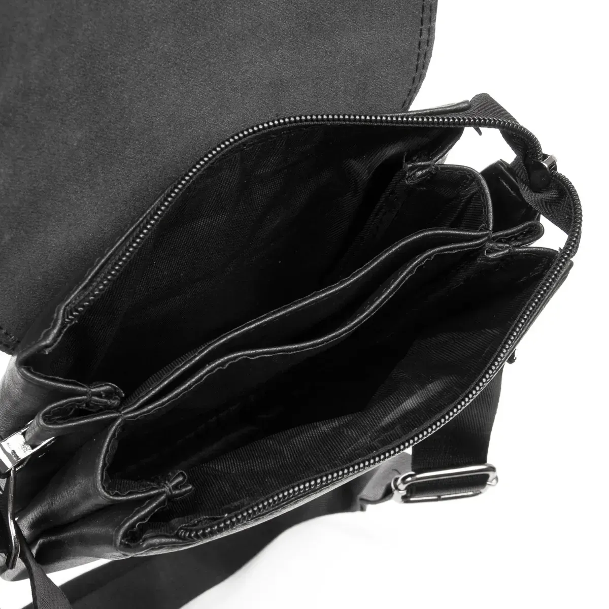 Чоловіча сумка – планшет Dr.Bond. Клапан виготовлений з натуральної щільної шкіри, фіксується на два приховані магніти. Під клапаном є два відділення, які додатково закриваються на загальну блискавку. Відділення розділені кишенею-перегородкою. На фасаді знаходиться велика відкрита кишеня. На зворотному боці сумки є кишеня на блискавці. Регульований плечовий ремінь в комплекті. Розмір (см) 17*21*6< /p>