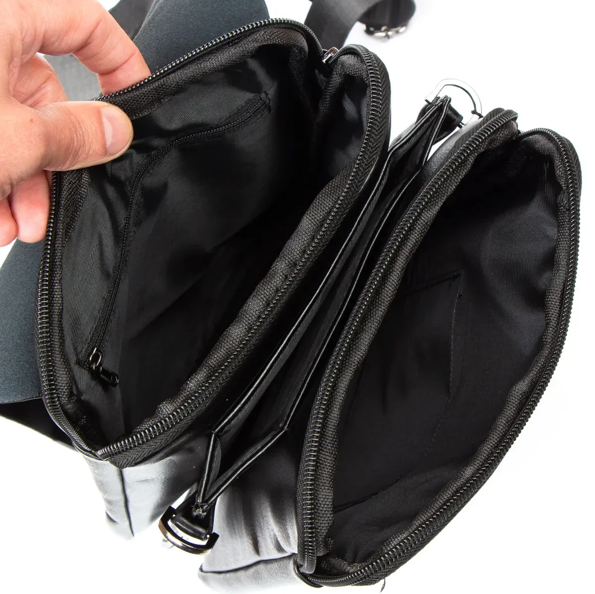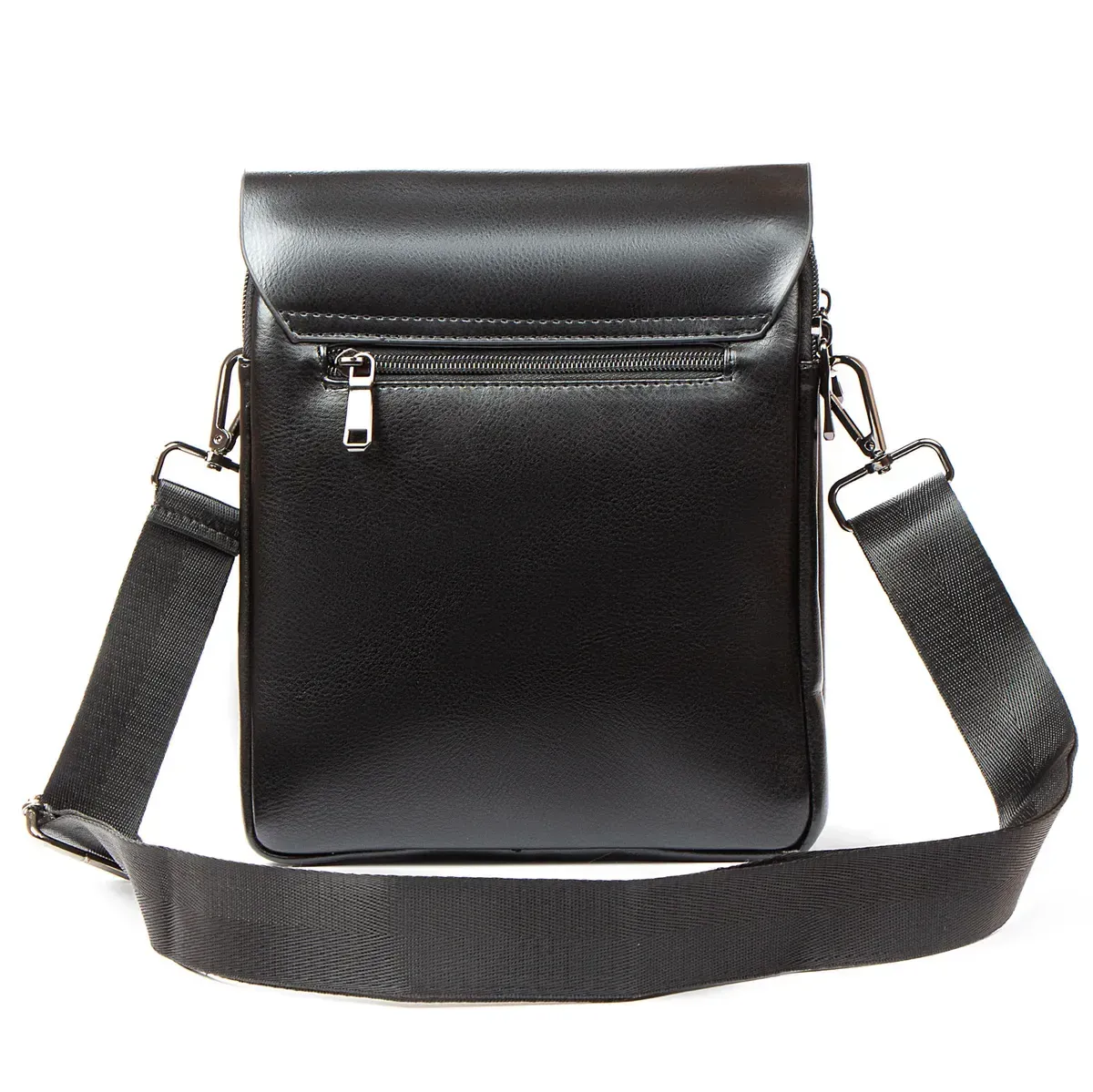 Чоловіча сумка – планшет Dr.Bond. Клапан виготовлений з натуральної щільної шкіри, фіксується на два приховані магніти. Під клапаном знаходяться три відділення: центральне – відкрите, а бічні закриваються на блискавці. Усередині бічних відділень є кишеня на блискавці та відкрита кишеня для смартфона. На фасаді знаходиться велика відкрита кишеня. На зворотному боці сумки є кишеня на блискавці. Регульований плечовий ремінь в комплекті. Розмір (см) 21*25*9< /p>