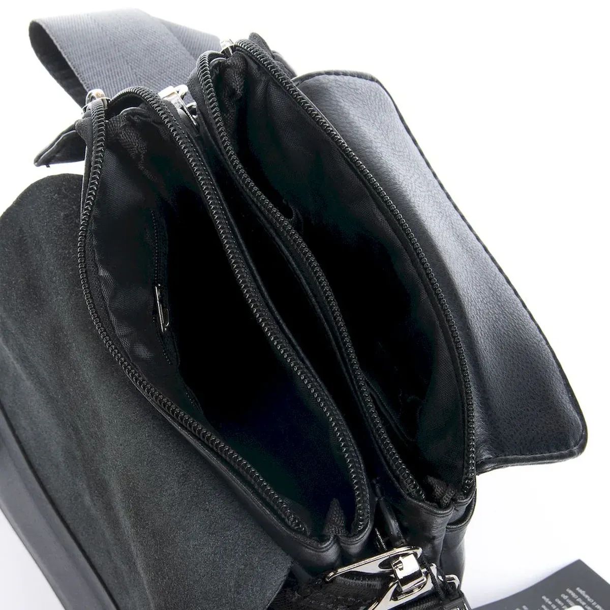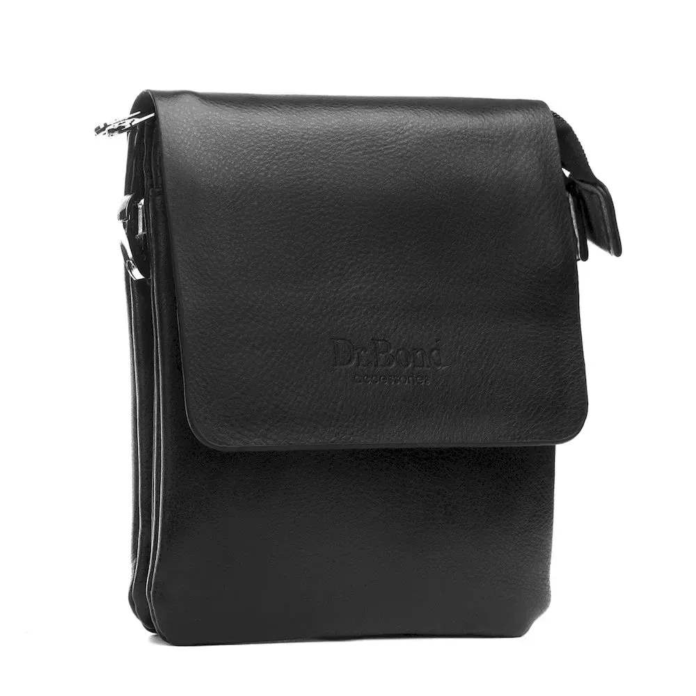 Чоловіча сумка-планшет Dr.Bond. Клапан виготовлений із натуральної гладкої шкіри. Під клапаном знаходяться три відділення (бічні додатково закриваються на блискавку). Усередині відділень є бічна кишеня на блискавці та відкрита кишеня для смартфона. На фасаді є відкрита кишеня. На звороті сумки є кишеня на блискавці. Регульований плечовий ремінь і ручка, що знімається.