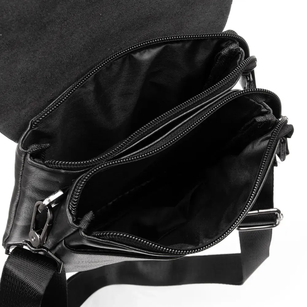 Мужская сумка - планшет Dr.Bond. Клапан изготовлен из натуральной плотной кожи, фиксируется на два скрытых магнита. Под клапаном находятся два отделения, которые дополнительно закрываются на молнии. Отделения разделены карманом-перегородкой. На фасаде под клапаном расположен большой открытый карман. На обратной стороне сумки есть карман на молнии.