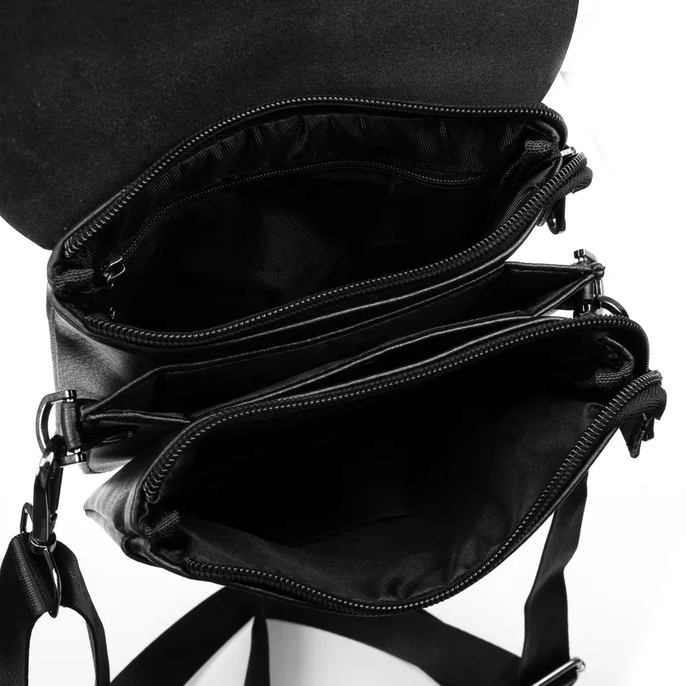 Мужская сумка - планшет Dr.Bond. Клапан изготовлен из натуральной плотной кожи, фиксируется на два скрытых магнита. Под клапаном находятся два отделения, которые дополнительно закрываются на молнии. Отделения разделены карманом-перегородкой. На фасаде под клапаном расположен большой открытый карман. На обратной стороне сумки есть карман на молнии.