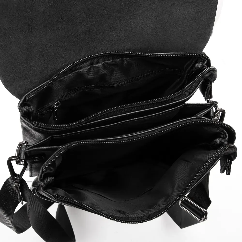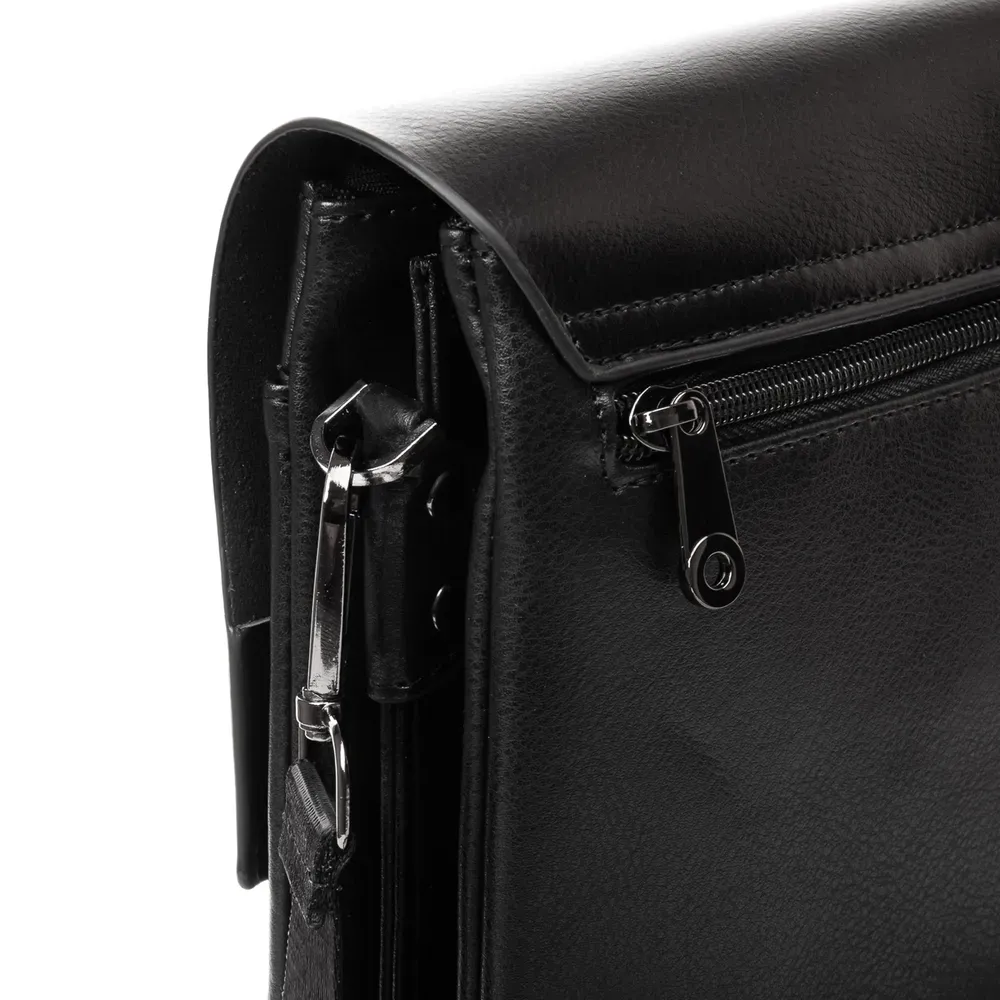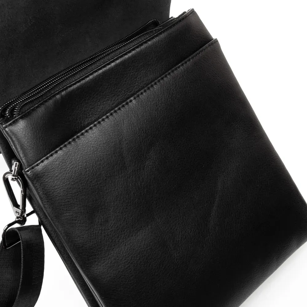 Мужская сумка - планшет Dr.Bond. Клапан изготовлен из натуральной плотной кожи, фиксируется на два скрытых магнита. Под клапаном находятся два отделения, которые дополнительно закрываются на молнии. Отделения разделены карманом-перегородкой. На фасаде под клапаном расположен большой открытый карман. На обратной стороне сумки есть карман на молнии.