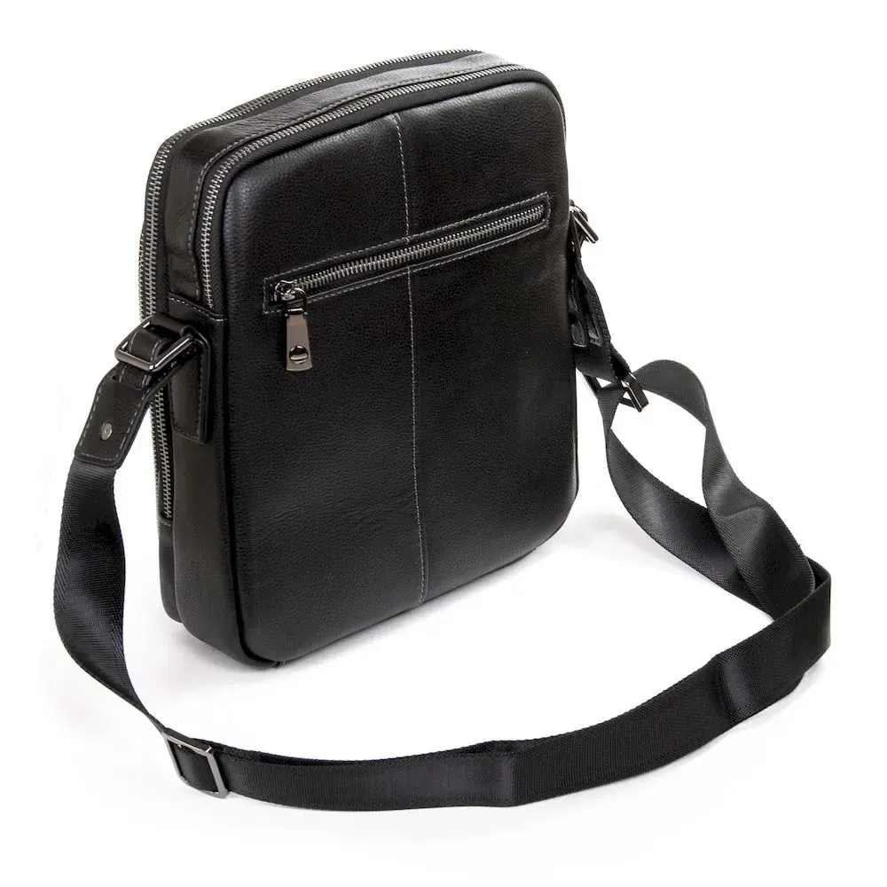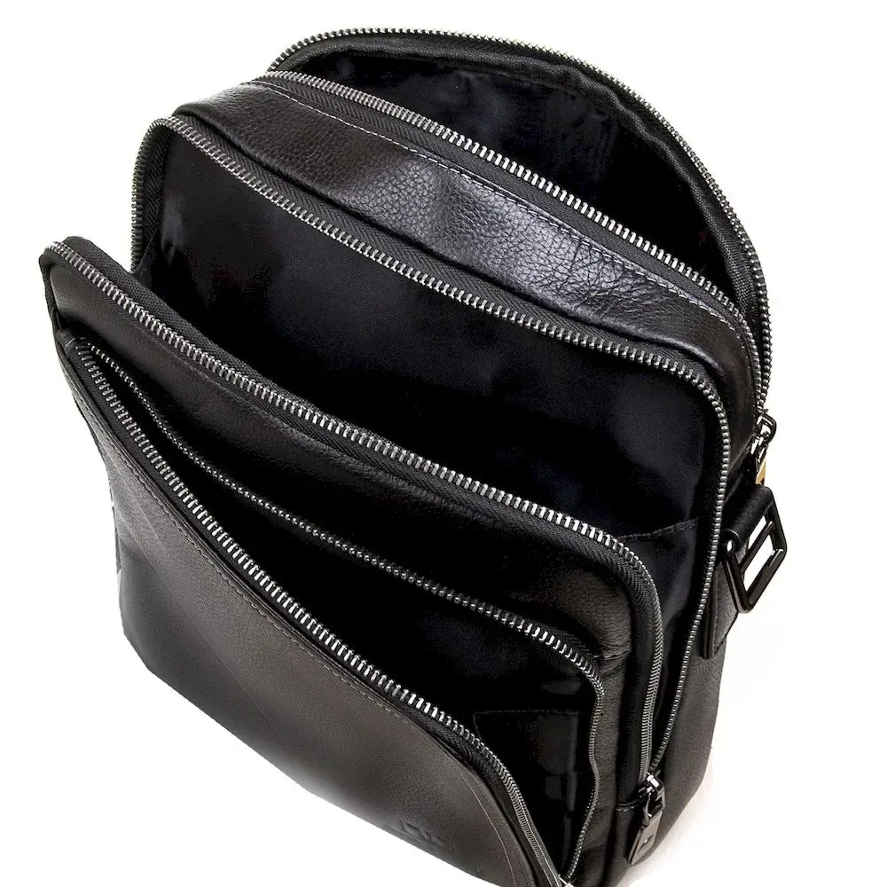 Чоловіча шкіряна сумка-планшет Bretton. Два відділення, що закриваються на блискавку. Усередині одного відділення є бічна відкрита кишеня, а всередині іншого - кишеня на блискавці. На фасаді сумки та на звороті розташовані великі кишені на блискавці. Регульований плечовий ремінь та знімна ручка в комплекті.