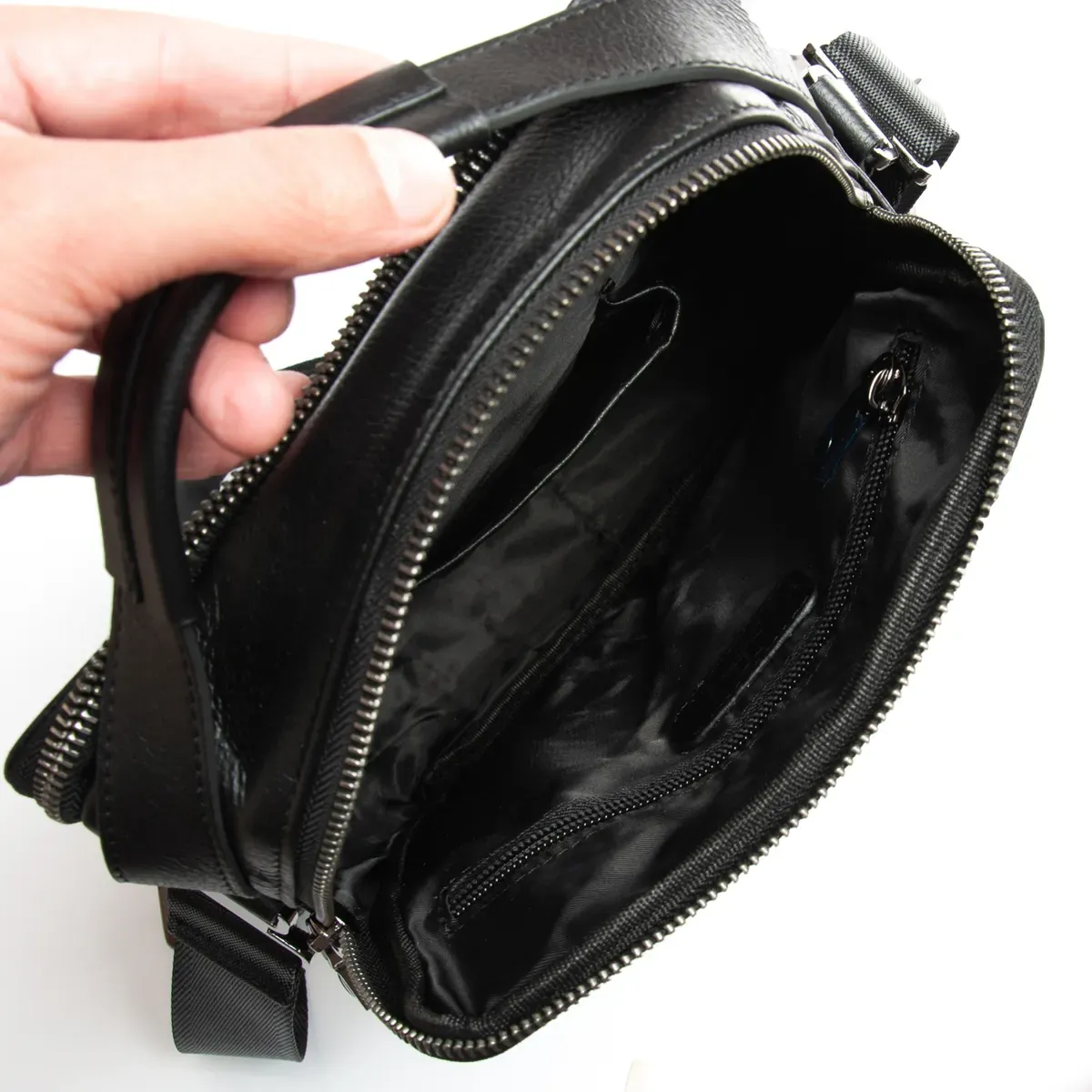 Изготовлена из мягкой натуральной кожи. Два отделения, закрываются на молнию. Внутри отделений есть открытый карман и боковой карман на молнии. На обратной стороне сумки есть карман на молнии.