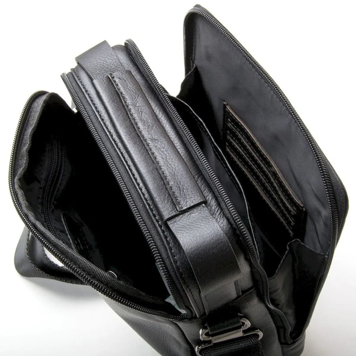 Чоловіча шкіряна сумка-планшет Bretton. Виготовлена із м'якої натуральної шкіри. Два відділення, що закриваються на блискавку. Усередині першого відділення є відкрита кишеня, а у другому відділенні знаходиться бічна кишеня на блискавці. На звороті сумки є кишеня на блискавці. Регульований плечовий ремінь.