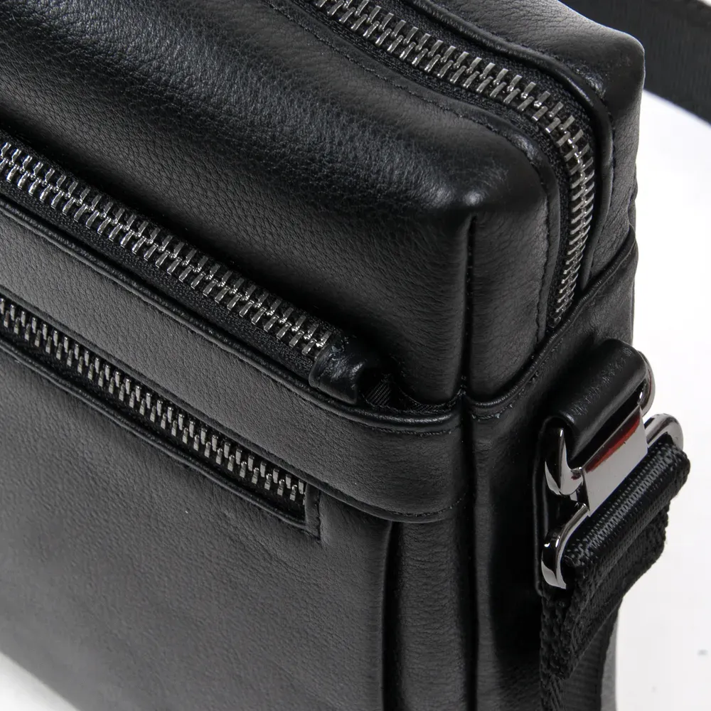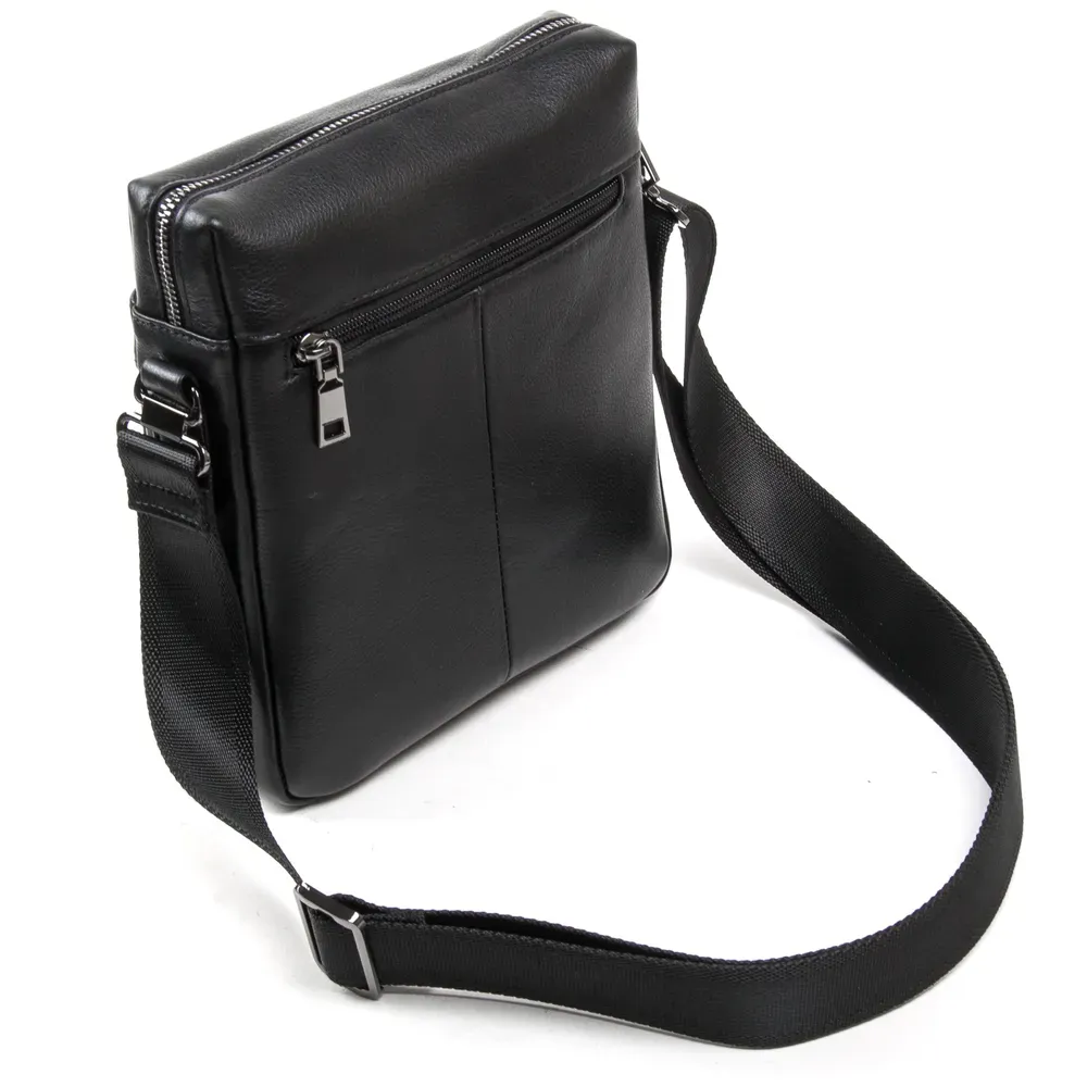 Чоловіча шкіряна сумка-планшет Bretton. Виготовлена із натуральної м'якої шкіри. Одне відділення закривається на блискавку. Усередині є відкрита кишеня та бічна кишеня на блискавці. На фасаді сумки та на звороті розташовані кишені на блискавці. Регульований плечовий ремінь.
