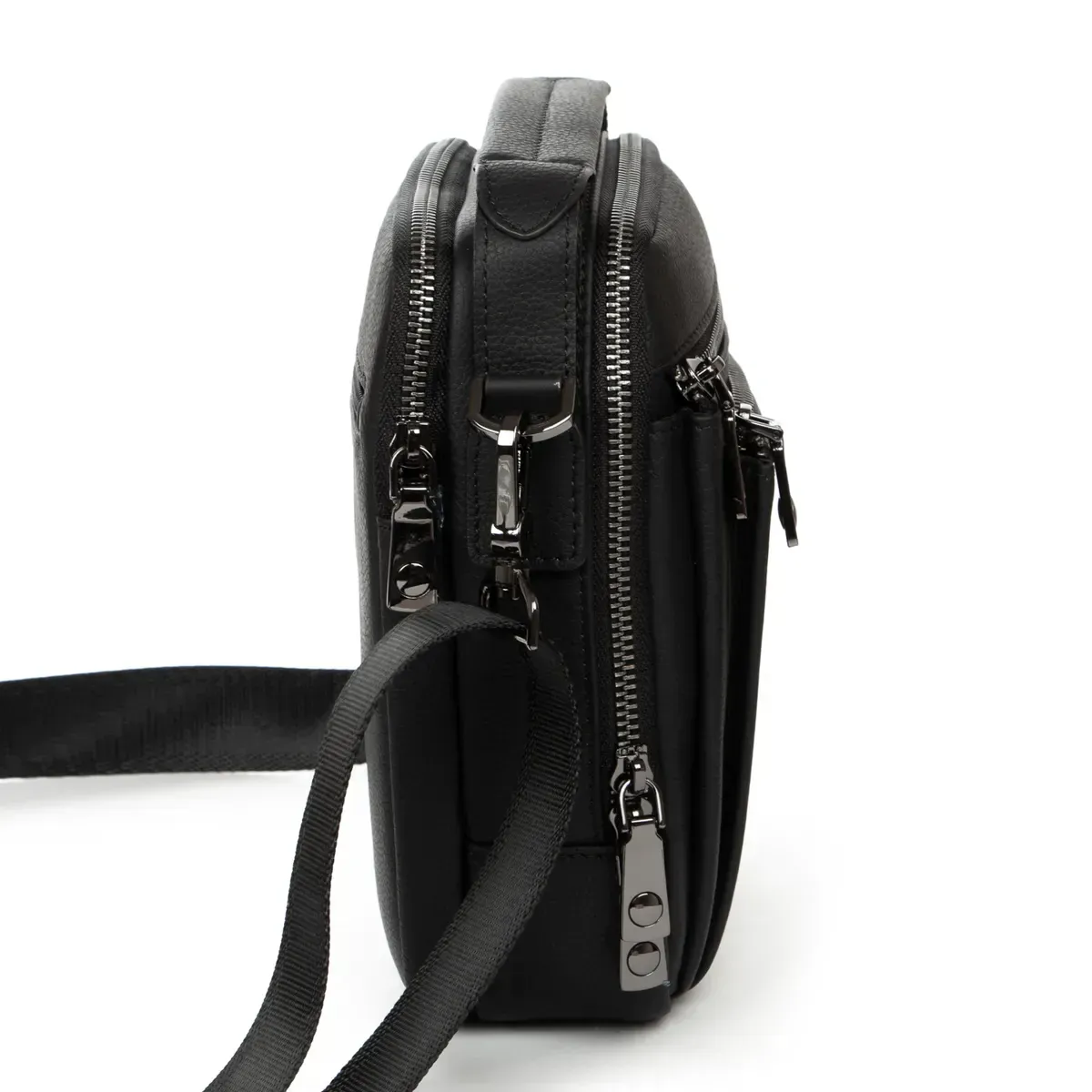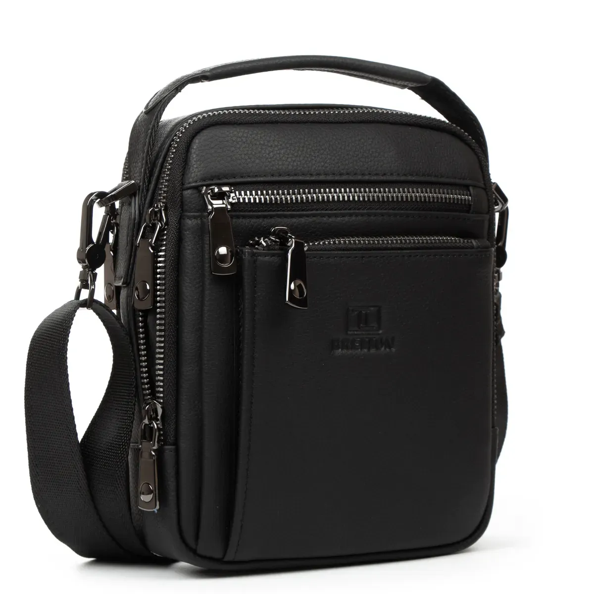 Чоловіча компактна шкіряна сумка-планшет Bretton. Виготовлена із м'якої натуральної шкіри. Два відділення, що закриваються на блискавці. Усередині відділень є бічна відкрита кишеня та кишеня на блискавці. На фасаді сумки знаходяться дві кишені на блискавці. а на звороті одна кишеня.