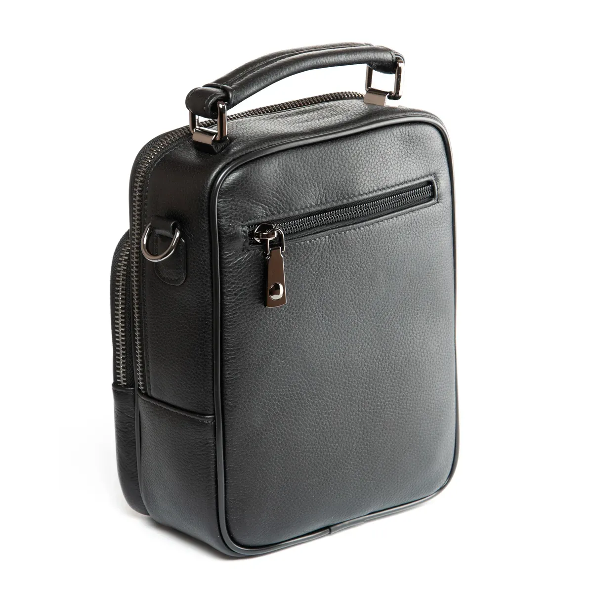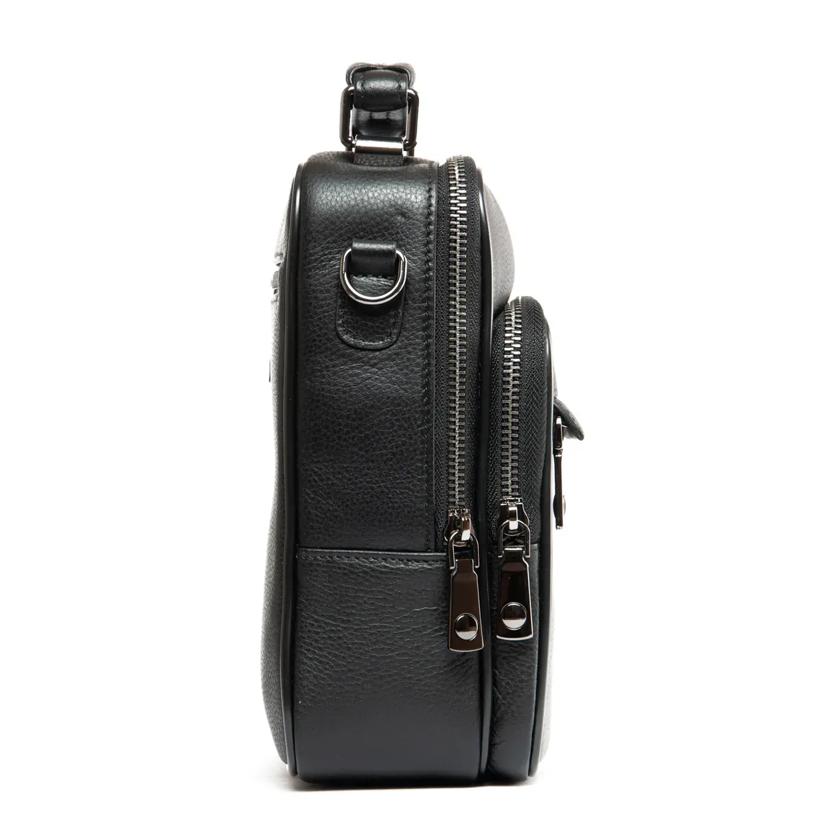 Изготовлена из мягкой натуральной кожи. Одно отделение, закрывается на молнию. Внутри отделения есть открытый карман и боковой карман на молнии. На фасаде находятся два кармана на молнии, а на обратной стороне сумки есть один карман на молнии.
