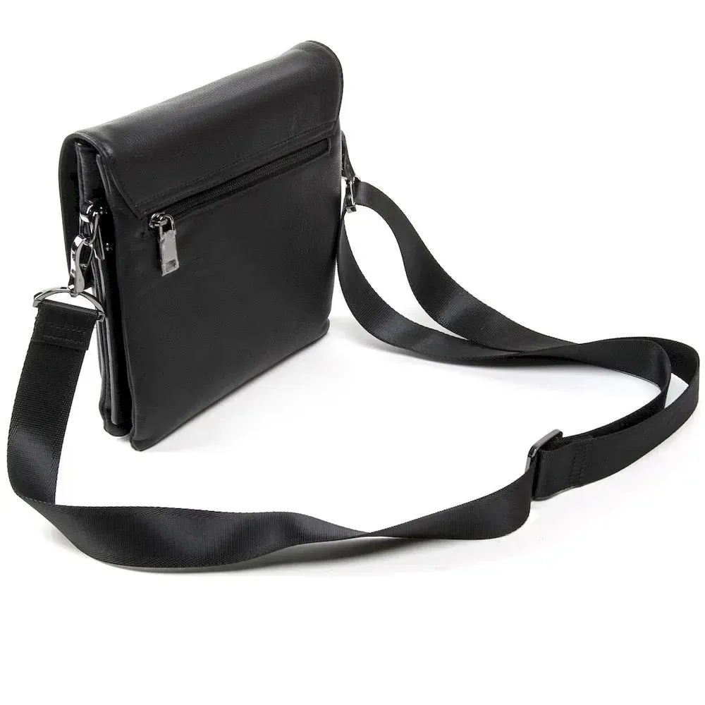 Чоловіча шкіряна сумка-планшет Bretton. Під клапаном додатково закривається на блискавку. Усередині є два відділення, кишеня-перегородка, відкрита кишеня та бічна кишеня на блискавці. На фасаді сумки та на звороті розташовані кишені на блискавці. Регульований плечовий ремінь у комплекті.