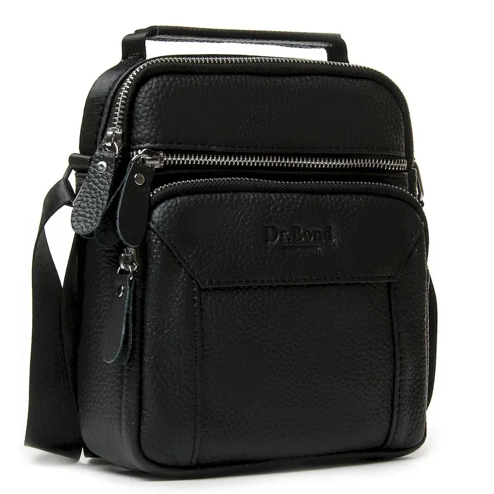 Шкіряна чоловіча сумка-планшет Dr.Bond. Одне відділення закриється на блискавку. Усередині є бічна кишеня на блискавці. На фасаді та на звороті розташовані кишені на блискавці. Плечовий ремінь регулюється за довжиною.