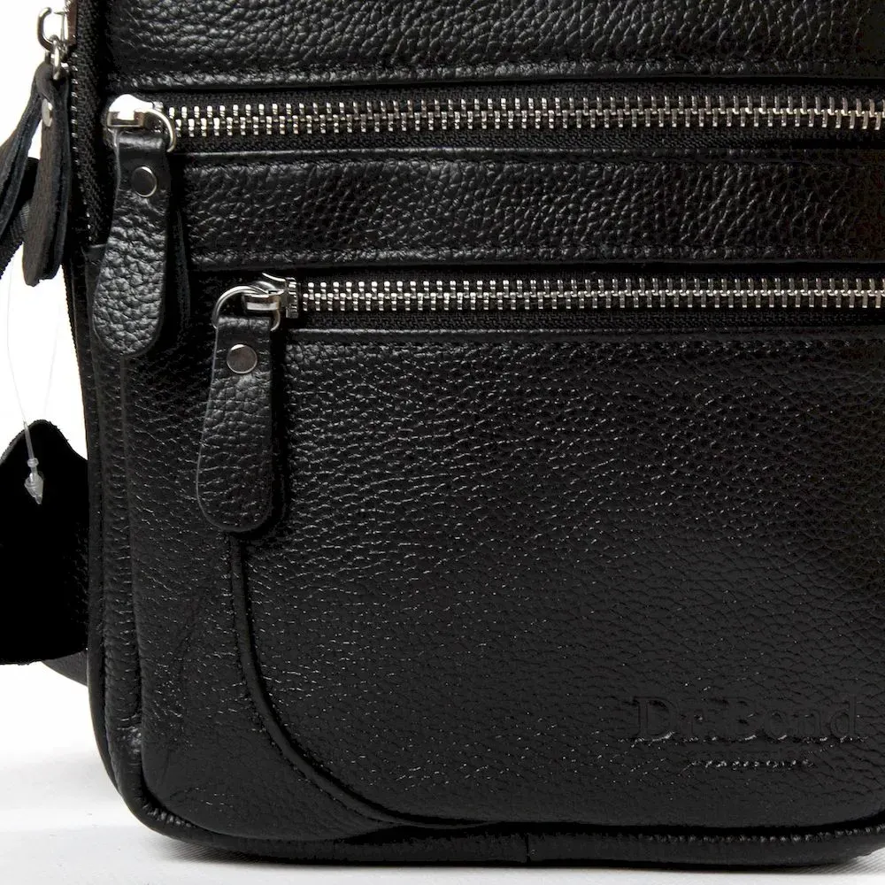 Шкіряна чоловіча сумка-планшет Dr.Bond. Два відділення, що закриваються на блискавку. Усередині є бічна кишеня на блискавці. На фасаді та на звороті розташовані кишені на блискавці. Плечовий ремінь регулюється за довжиною.