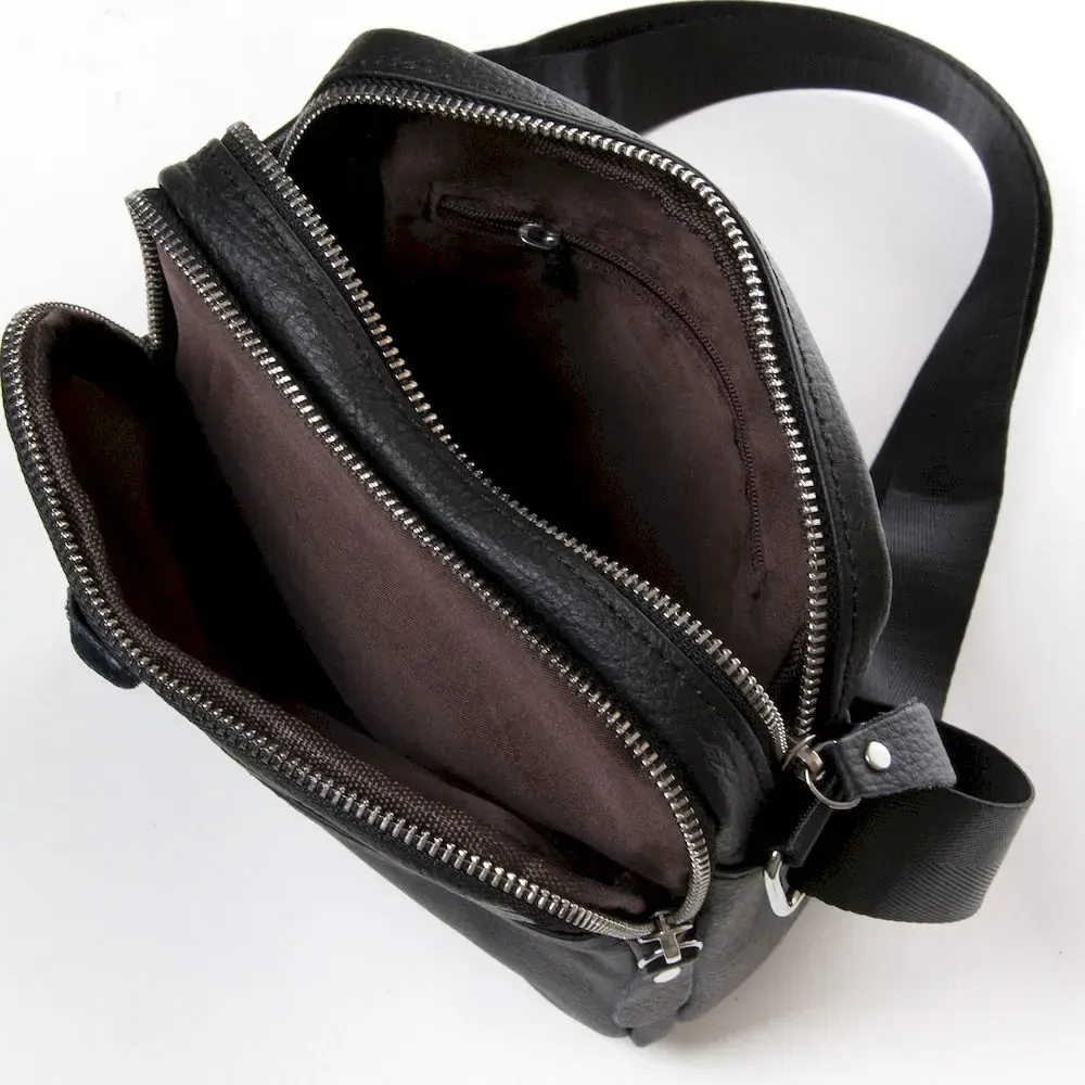 Шкіряна чоловіча сумка-планшет Dr.Bond. Два відділення, що закриваються на блискавку. Усередині є бічна кишеня на блискавці. На фасаді та на звороті розташовані кишені на блискавці. На фасаді також знаходиться відкрита кишеня. Плечовий ремінь регулюється за довжиною.