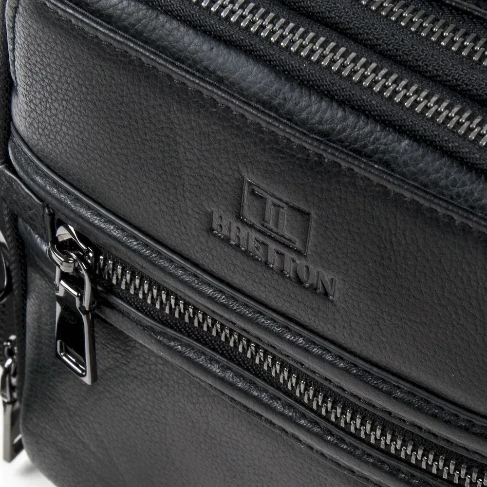 Чоловіча шкіряна сумка-планшет Bretton. Виготовлена із м'якої натуральної шкіри. Два відділення, що закриваються на блискавку. Усередині першого відділення є відкрита кишеня, а у другому відділенні знаходиться бічна кишеня на блискавці. На фасаді сумки є кишені на блискавці та на магнітній кнопці, а на звороті одна кишеня на блискавці. Регульований плечовий ремінь у комплекті. Розмір (см.) 17*20*7
